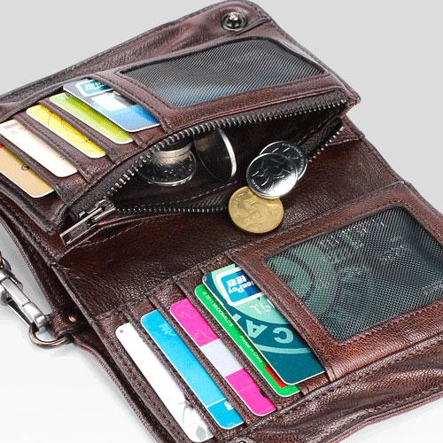 Design: Cool?Small?Vintage?Bifold?Leather Chain Biker Mens billfold Wallet