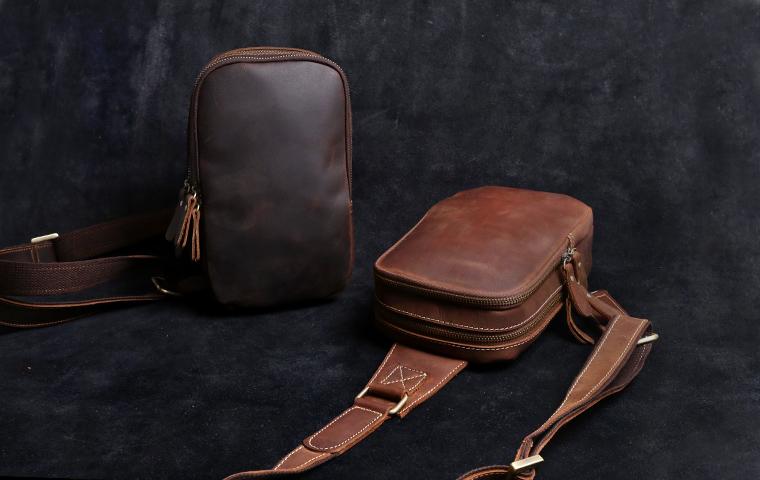 Design: Genuine Leather Mens Cool Chest Bag Sling Bag Crossbody Bag Travel Bag Hiking Bag for men