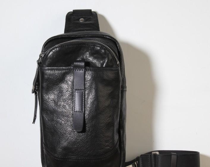 Design: Genuine Leather Mens Cool Chest Bag Sling Bag Crossbody Bag Travel Bag Hiking Bag for men
