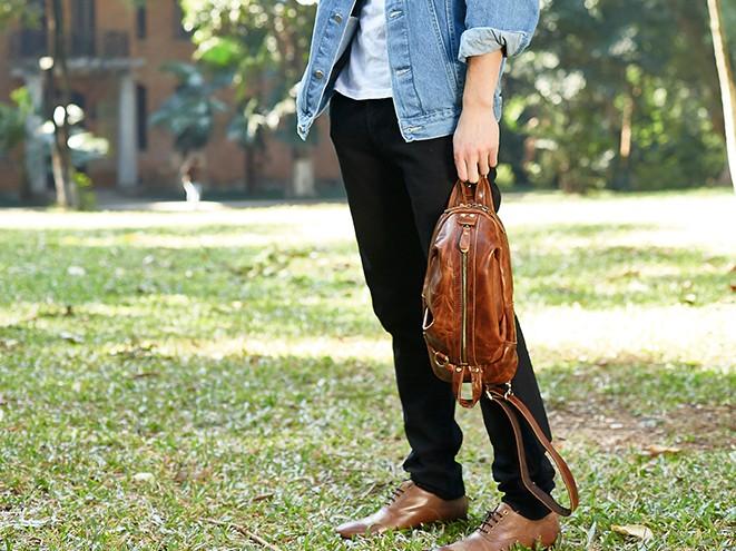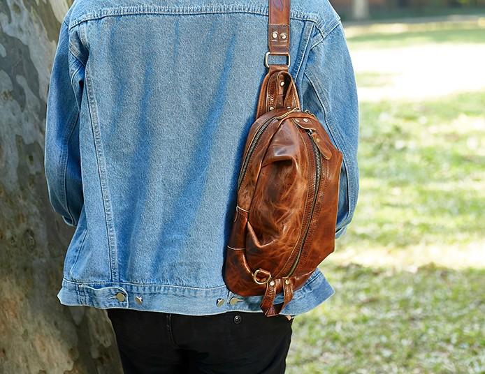 Style: Cool Leather Mens Sling Bag Shoulder Sling Bag Chest Bag for men