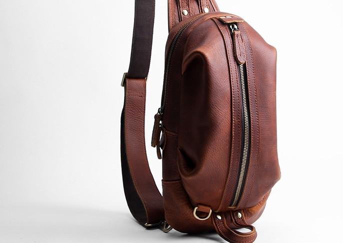 Design: Cool Leather Mens Sling Bag Shoulder Sling Bag Chest Bag for men