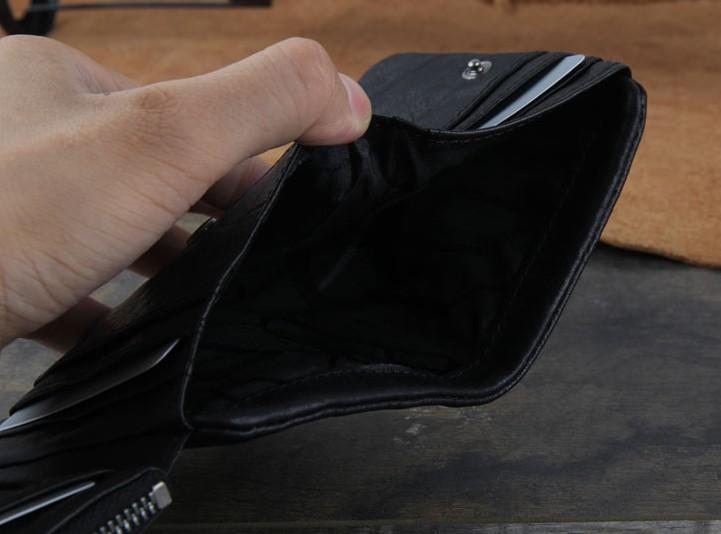 Design: Genuine Leather Mens Cool billfold Punk Rock Leather Wallet Men Small Wallets Trifold?for Men