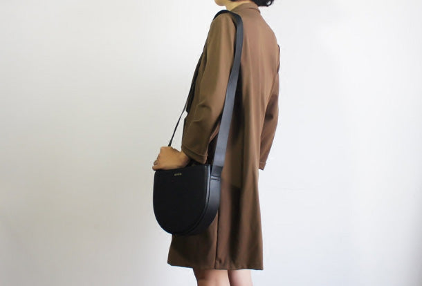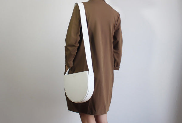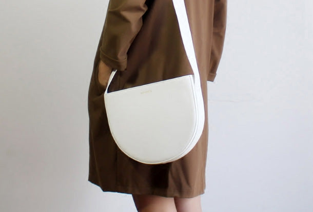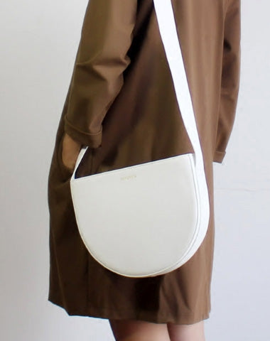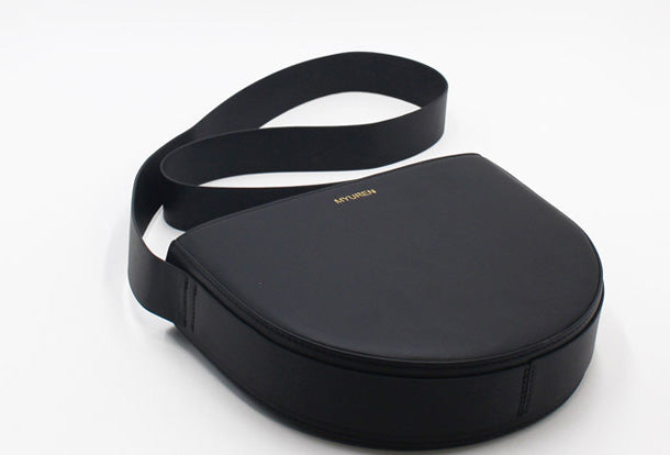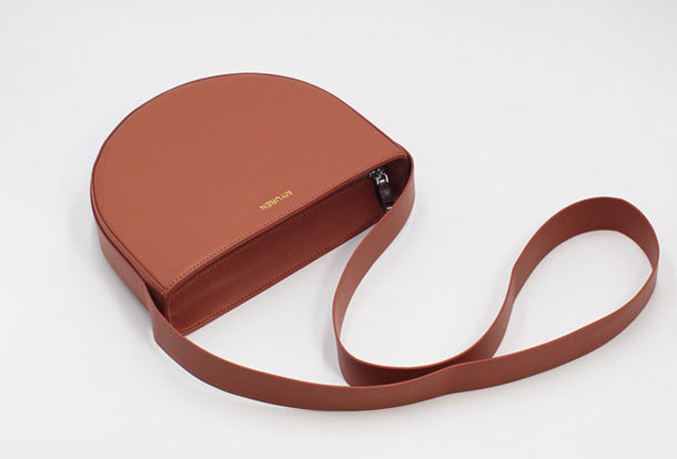 Design: Genuine Leather Round Saddle Purse Bag Shoulder Bag for Women Leather Crossbody Bag