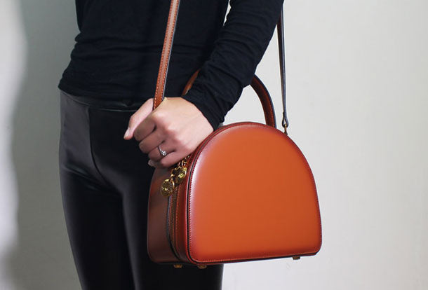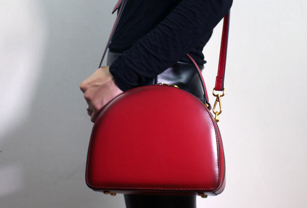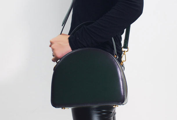 Design: Genuine Leather semi-circle handbag shoulder bag for women leather crossbody bag
