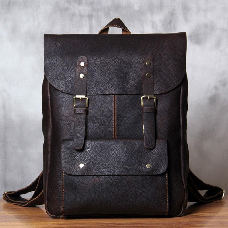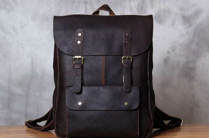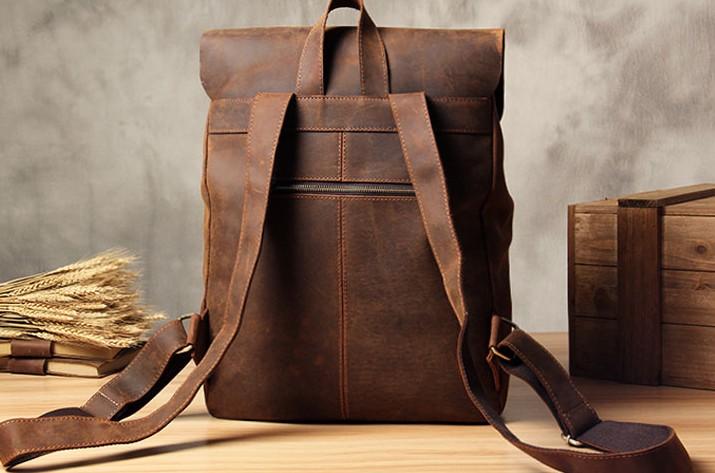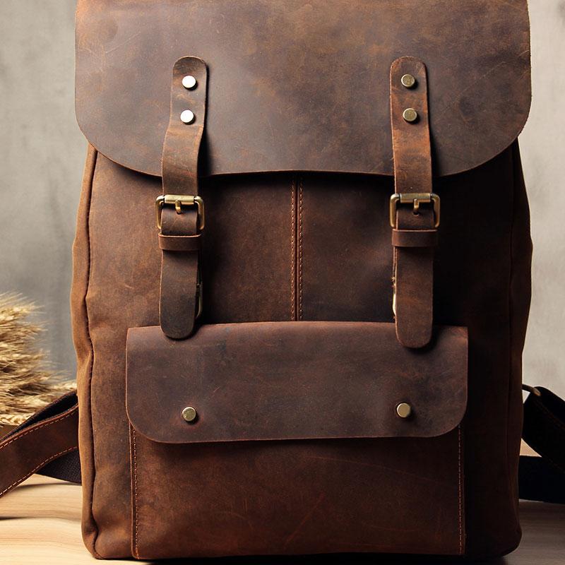 Style: Genuine Leather Vintage Brown Mens Cool Leather Backpack Travel Bag for men