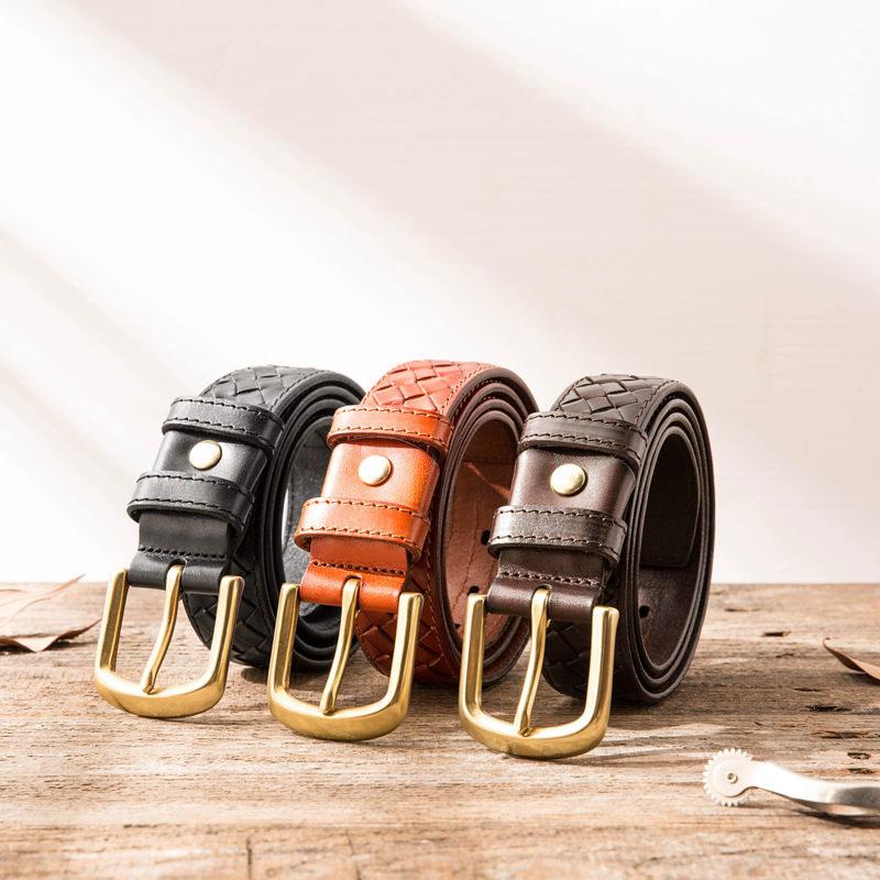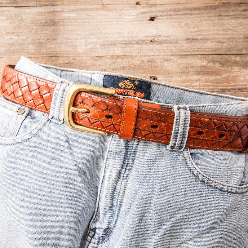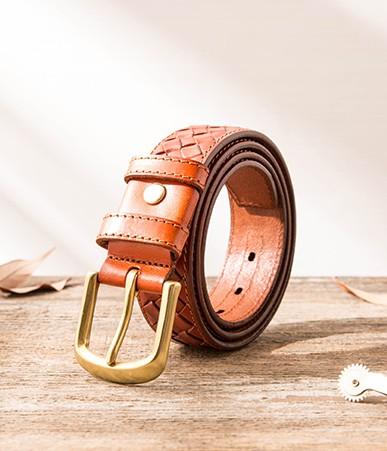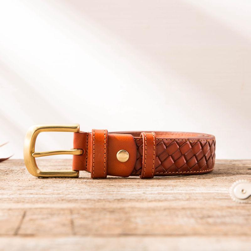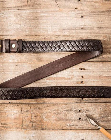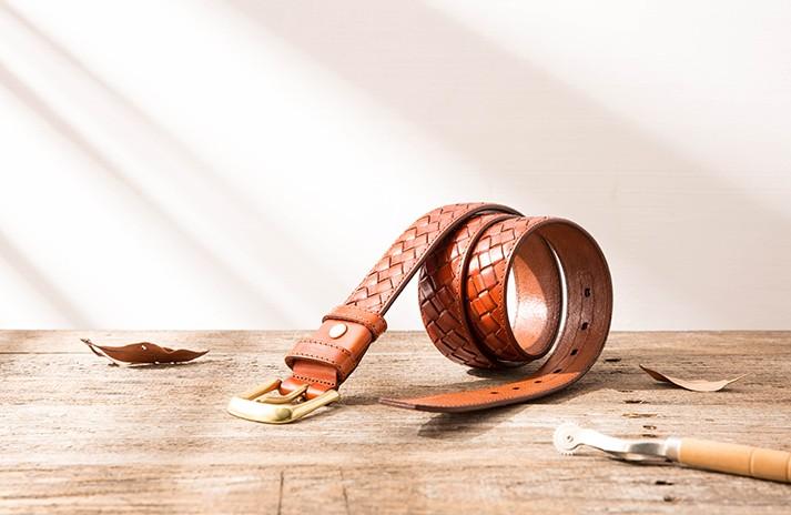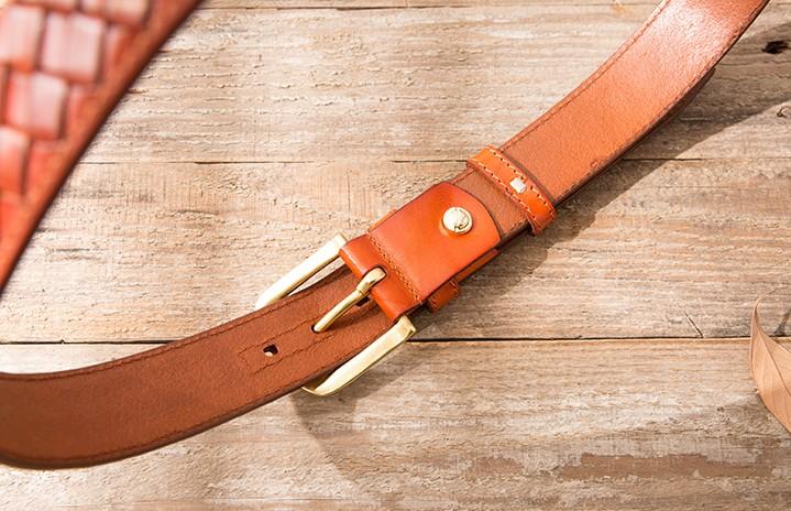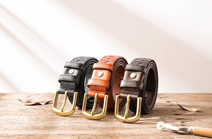 Style: Cool Handmade Red Brown Leather Mens Belt Leather Belt for Men