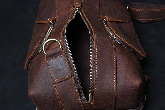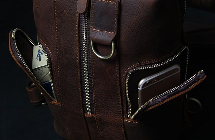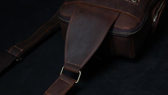 Design: Handmade Genuine Leather Coffee Mens Cool Sling Pack Bag Crossbody Bag Chest Bag for men