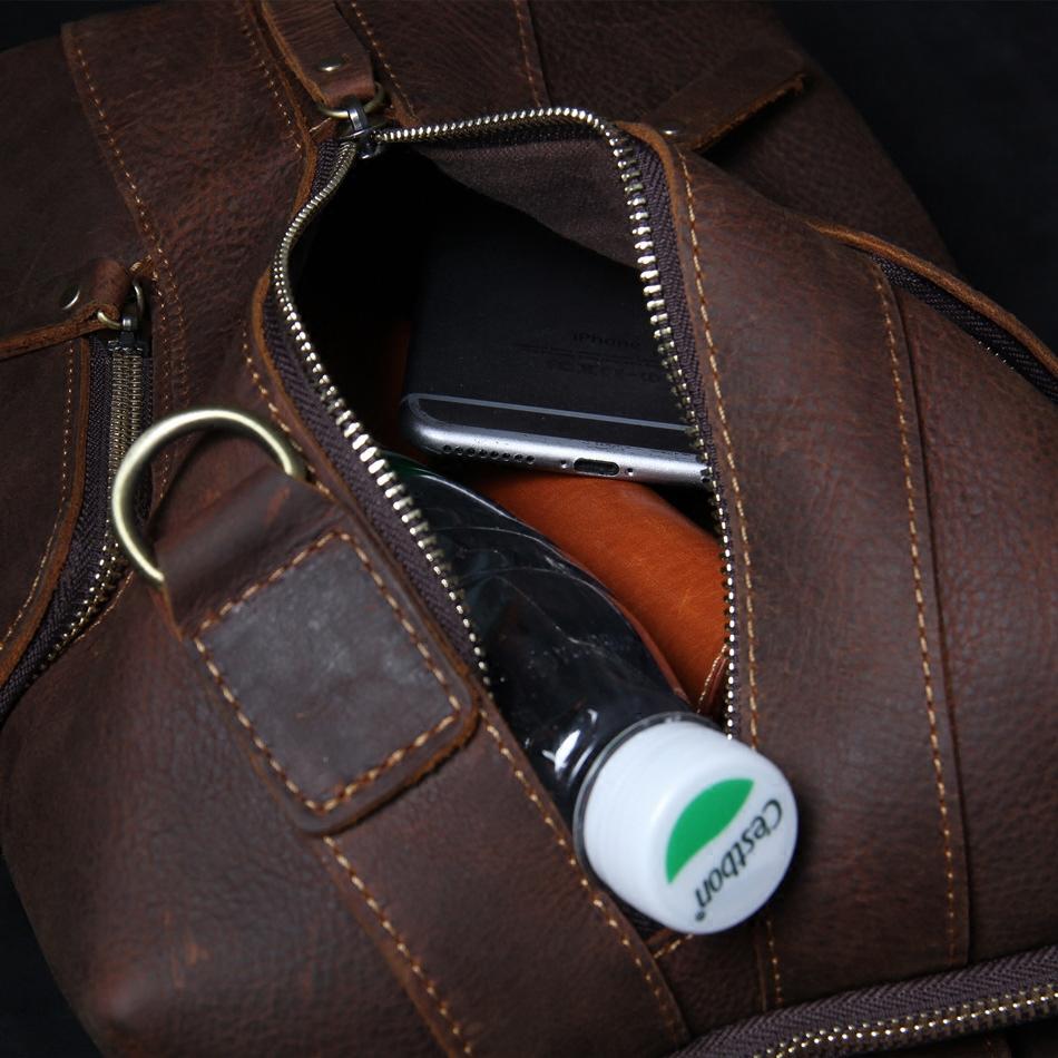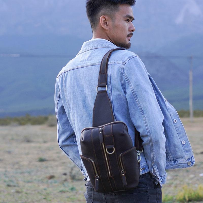 Handmade Genuine Leather Coffee Mens Cool Sling Pack Bag Crossbody Bag Chest Bag for men