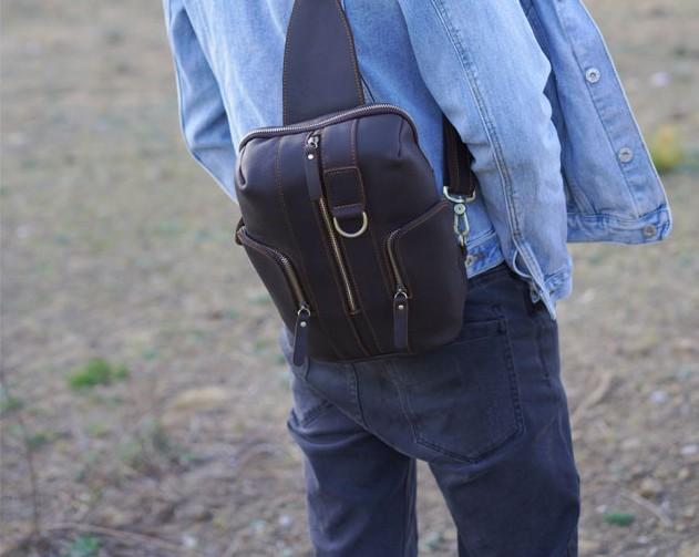 Style: Handmade Genuine Leather Coffee Mens Cool Sling Pack Bag Crossbody Bag Chest Bag for men