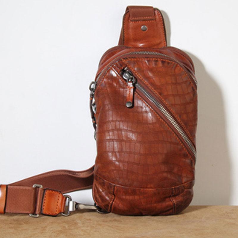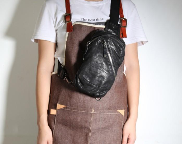 Design: Handmade Genuine Leather Mens Cool Chest Bag Sling Bag Crossbody Bag Travel Bag Hiking Bag for men