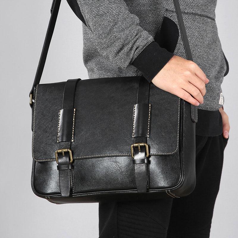Style: Handmade Genuine Leather Mens Cool Shoulder Bag Messenger Bag Cycling Bag for men