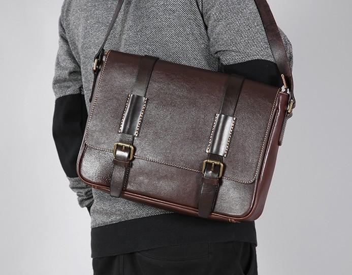 Design: Handmade Genuine Leather Mens Cool Shoulder Bag Messenger Bag Cycling Bag for men