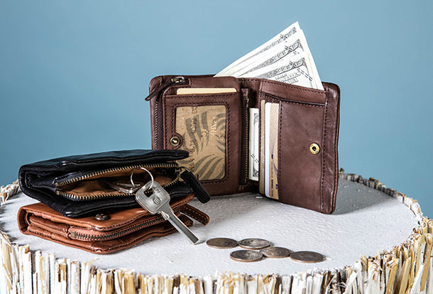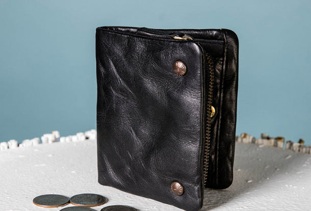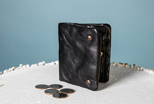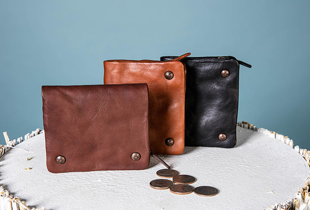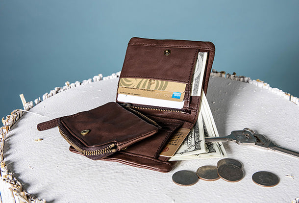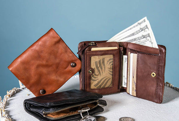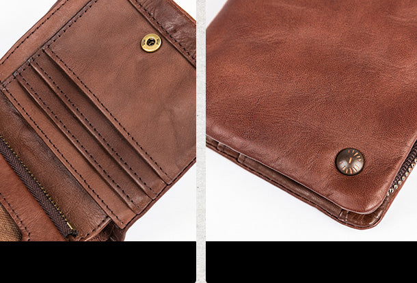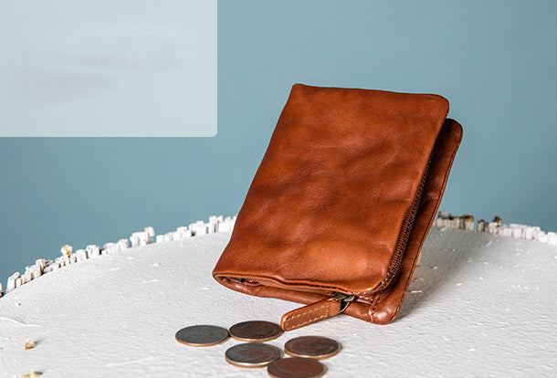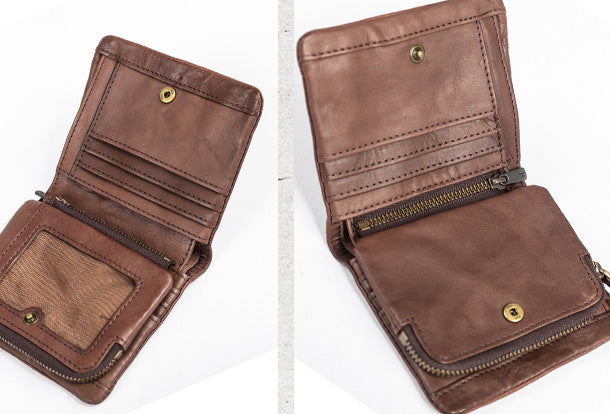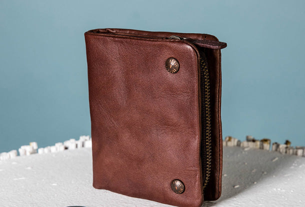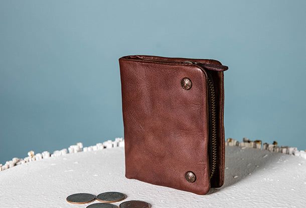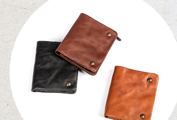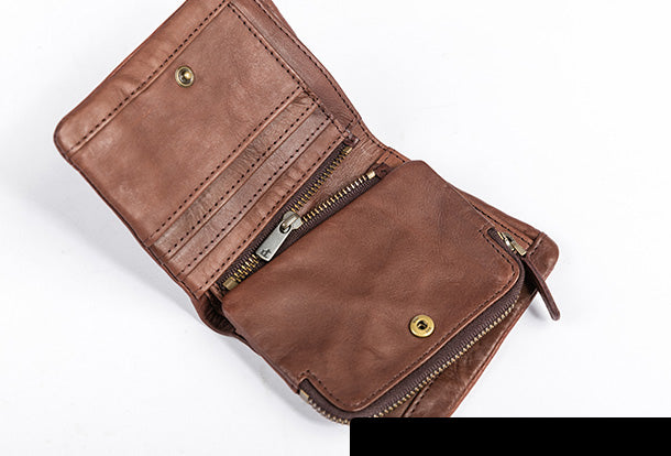 Style: Handmade Genuine Leather Wallet billfold Leather Wallet Slim Bifold Wallet Wristlet Bag For Women