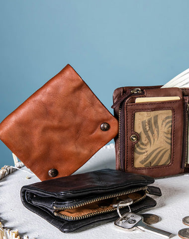 Design: Handmade Genuine Leather Wallet billfold Leather Wallet Slim Bifold Wallet Wristlet Bag For Women