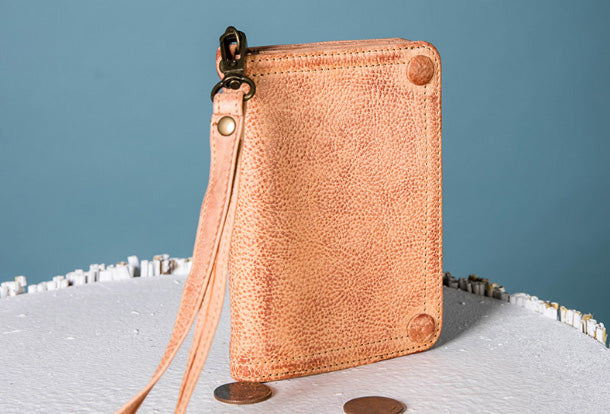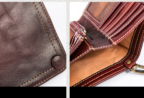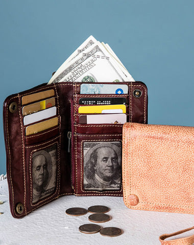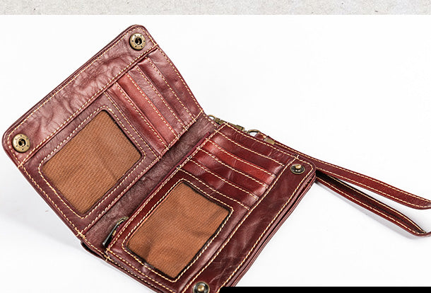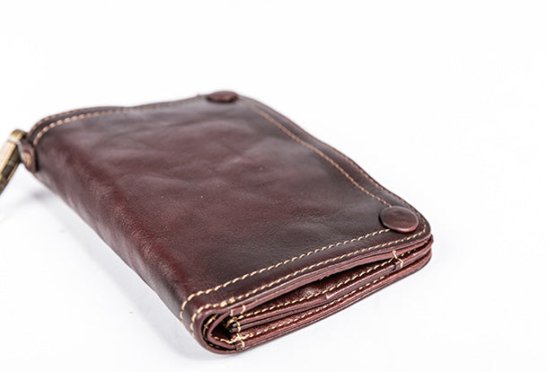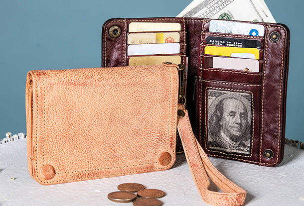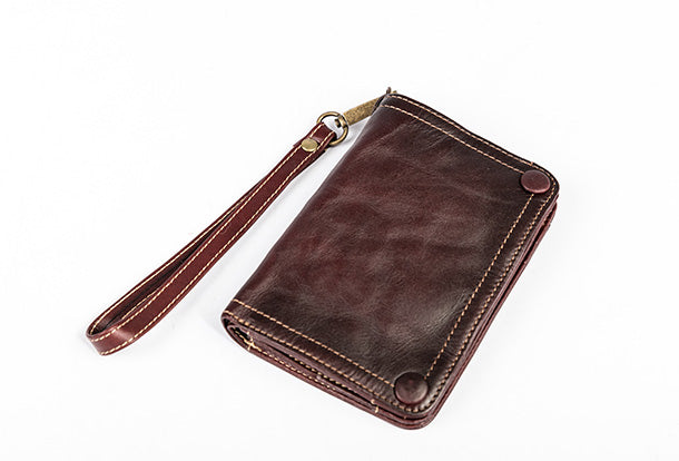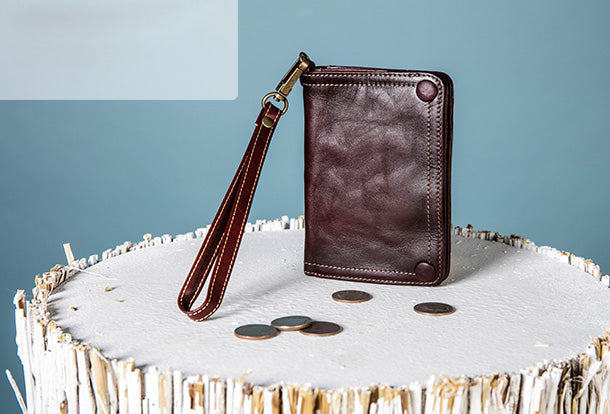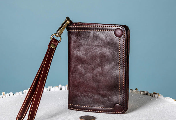Style: Handmade Genuine Leather Wallet billfold Leather Wallet Slim Bifold Wallet Wristlet Bag For Women