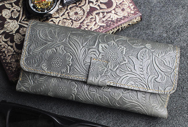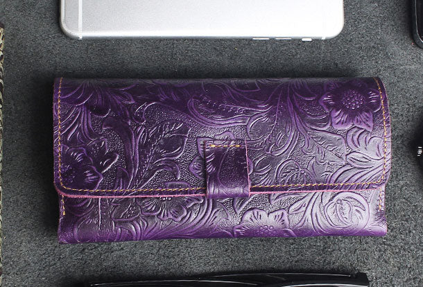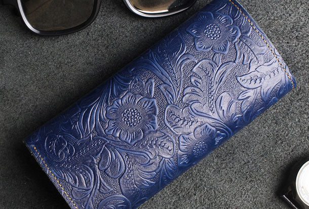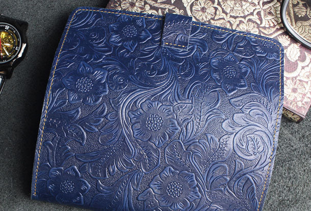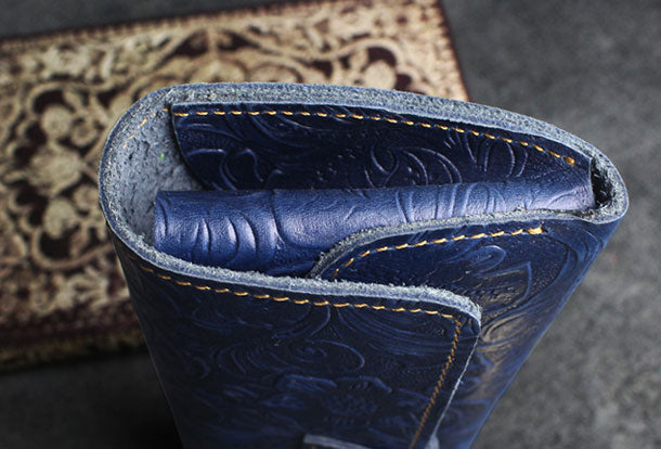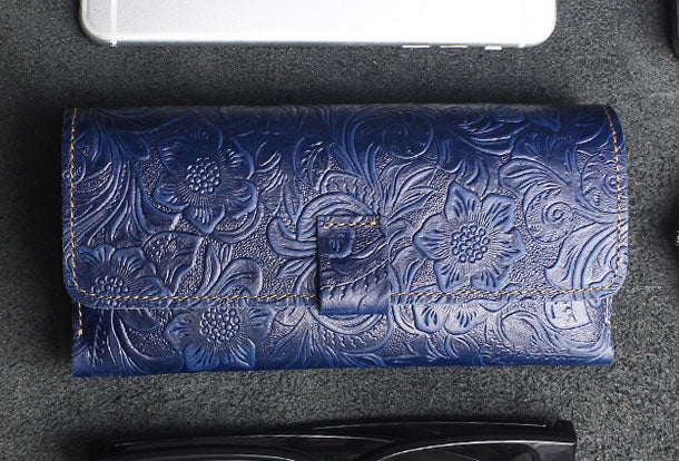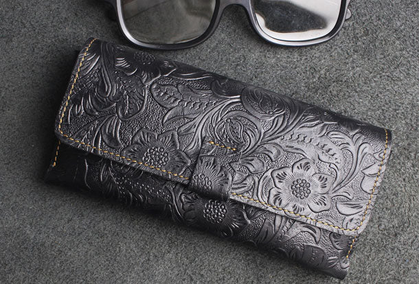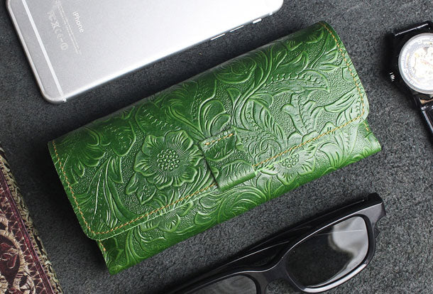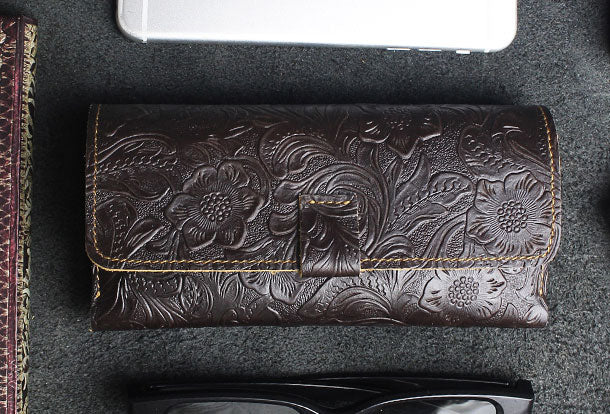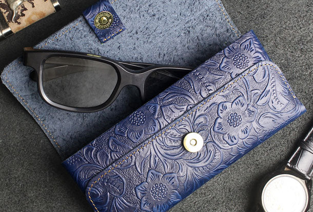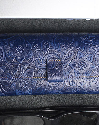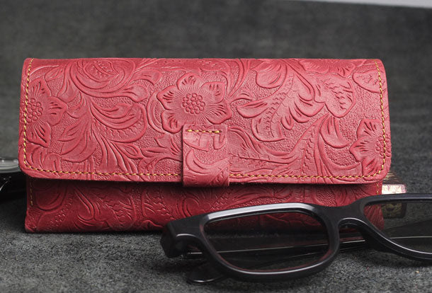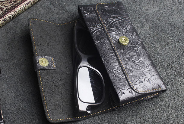Design: Handmade glasses leather box holder flowral leather billfold wallet for men women