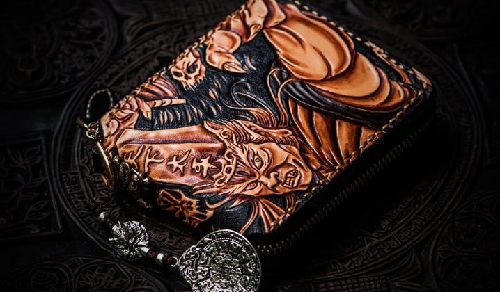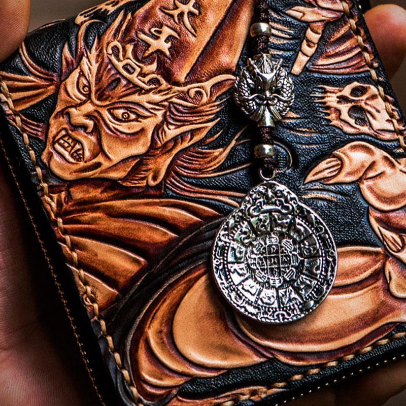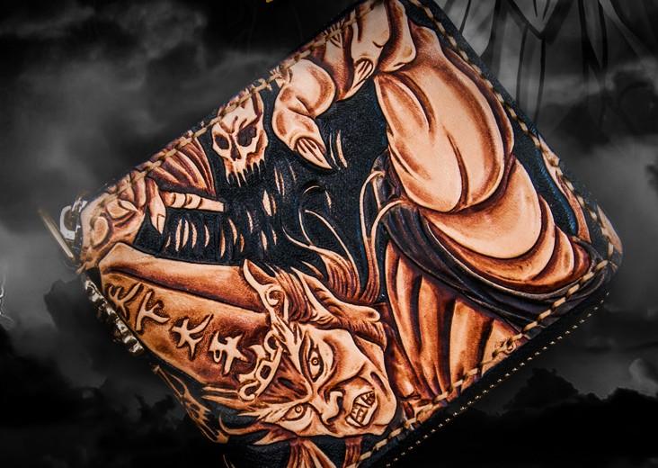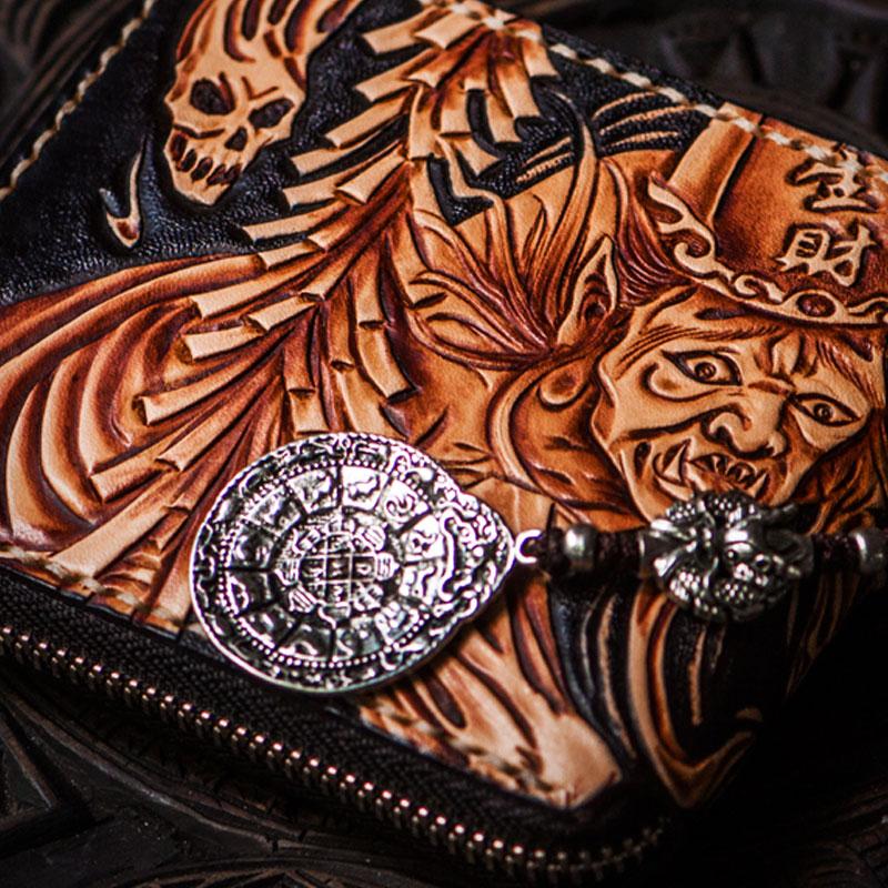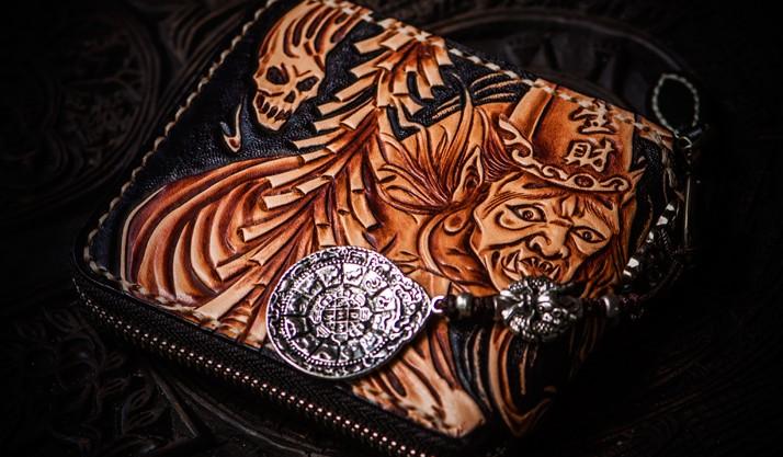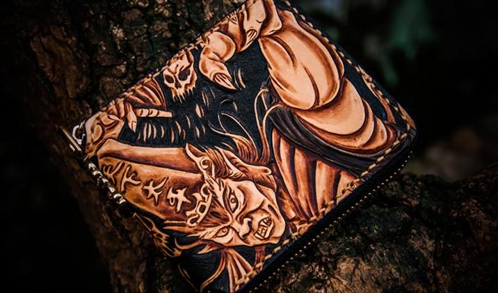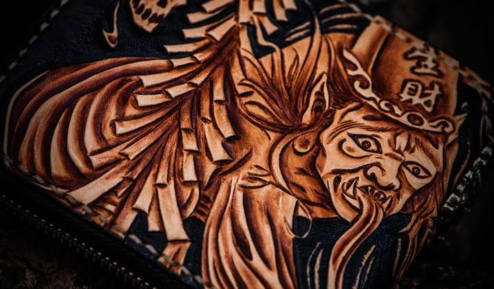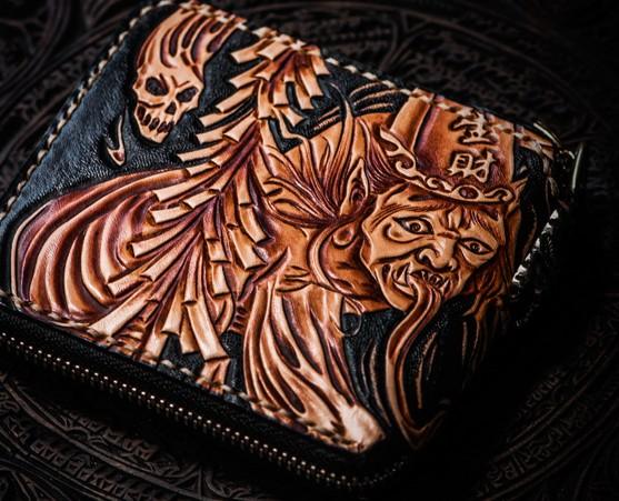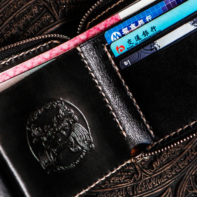 Design: Handmade Leather Chinese Black&White Tooled Mens billfold Wallet Cool Leather Wallet Slim Wallet for Men