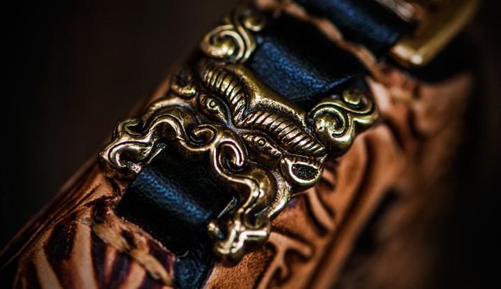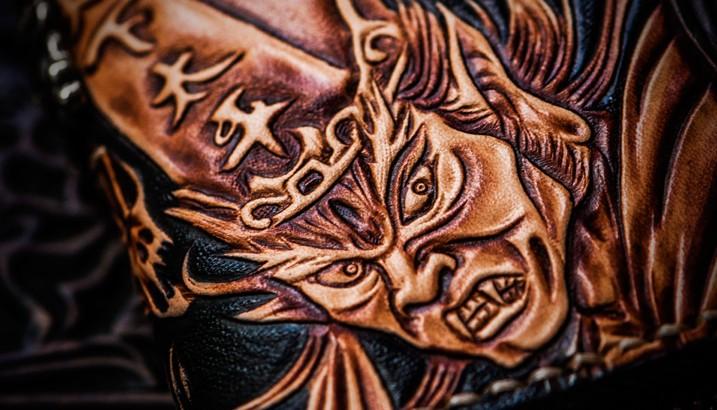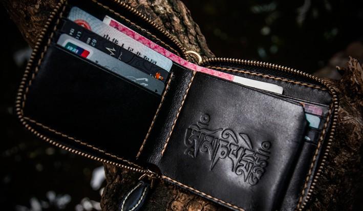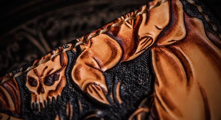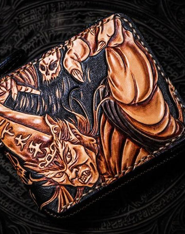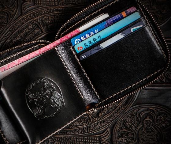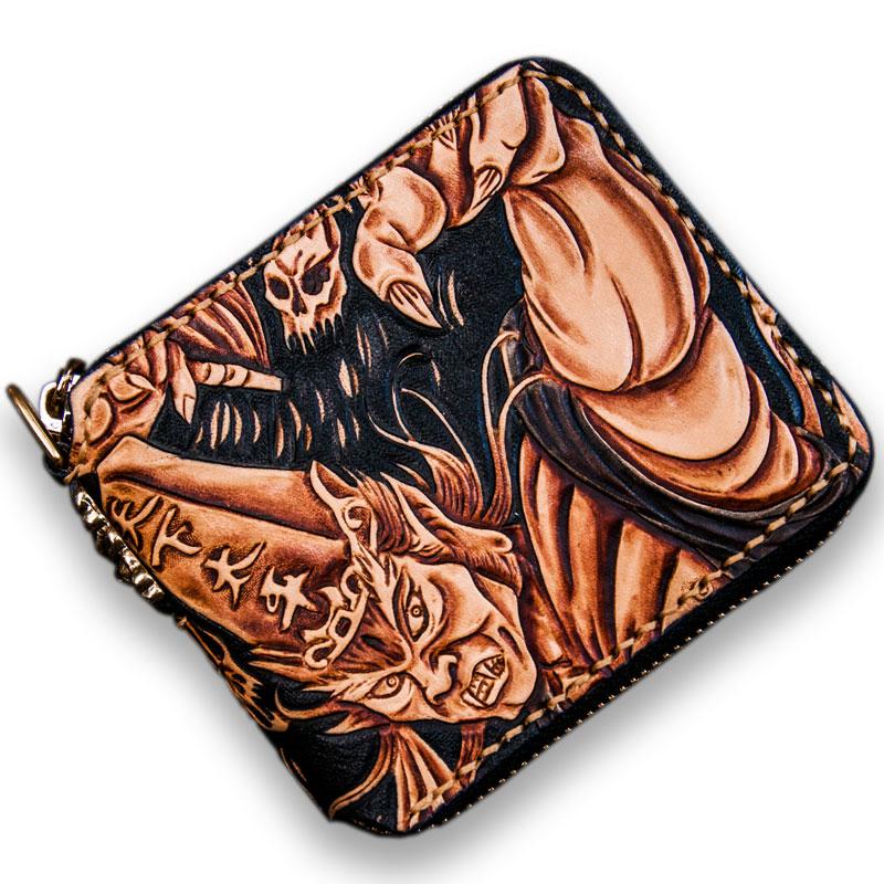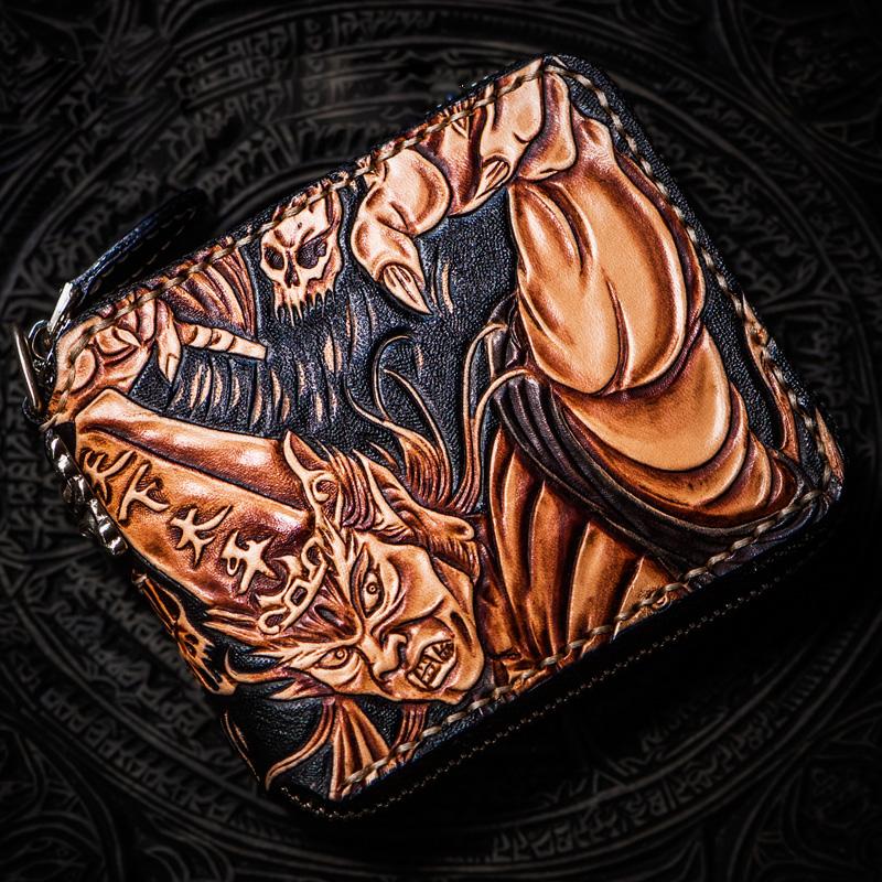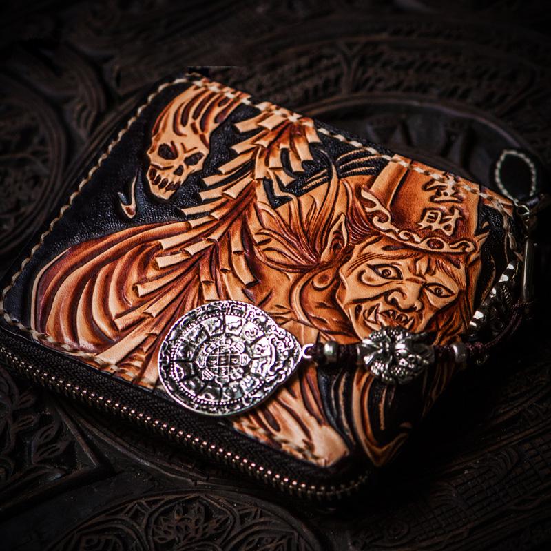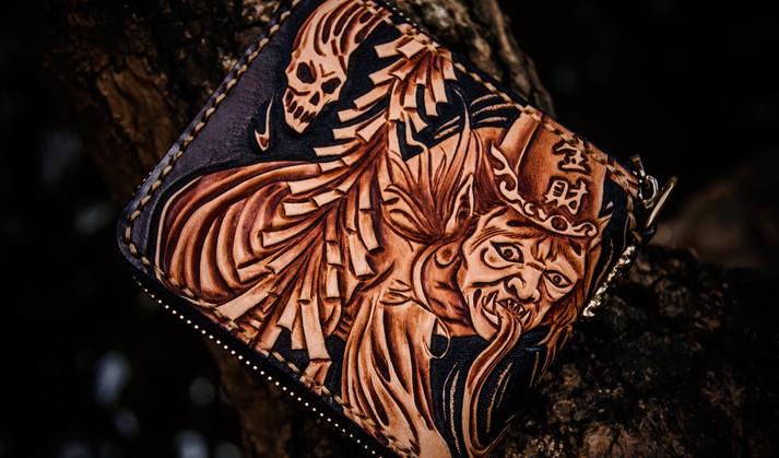 Design: Handmade Leather Chinese Black&White Tooled Mens billfold Wallet Cool Leather Wallet Slim Wallet for Men