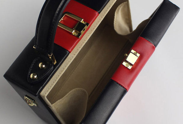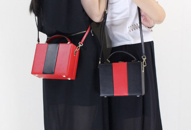 Design: Genuine Leather Cube bag shoulder bag black for women leather crossbody bag