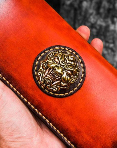 Design: Handmade Leather Men Tooled Cool Leather Wallet Long Phone Wallets for Men