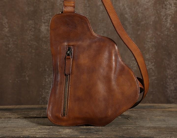 Style: Handmade Leather Mens Cool Chest Bag Sling Bag Crossbody Bag Travel Bag Hiking Bag for men