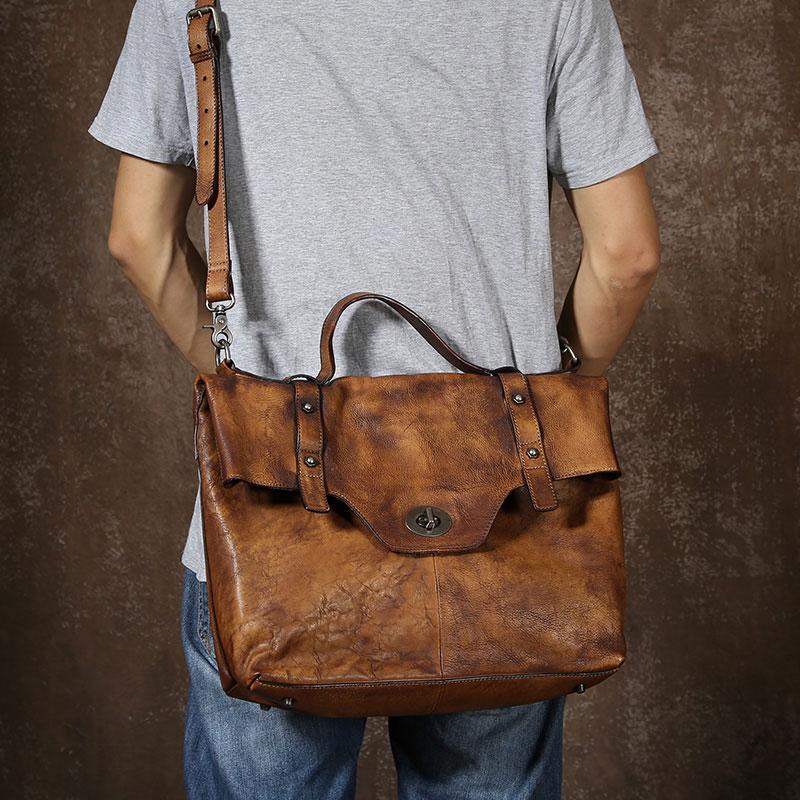 Style: Handmade Leather Mens Cool Messenger Bag Briefcase Work Bag Business Bag Laptop Bag for men