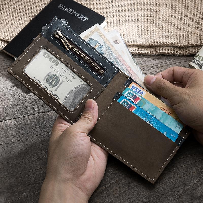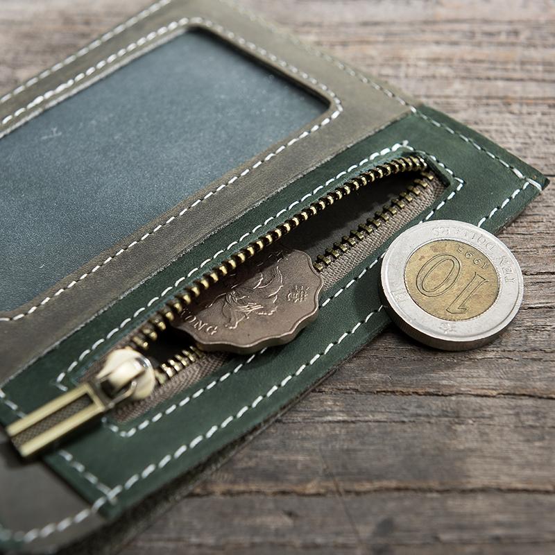 Design: Handmade Leather Mens Cool Slim Leather Zipper Wallet Men Small Wallets Bifold for Men
