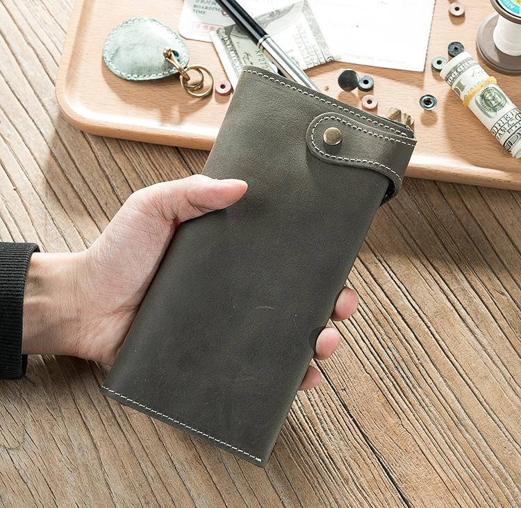 Design: Handmade Leather Mens Clutch Wallet Cool Leather Wallet Long Phone Wallets for Men