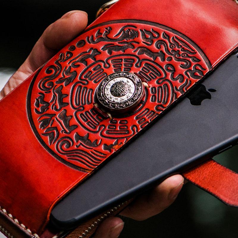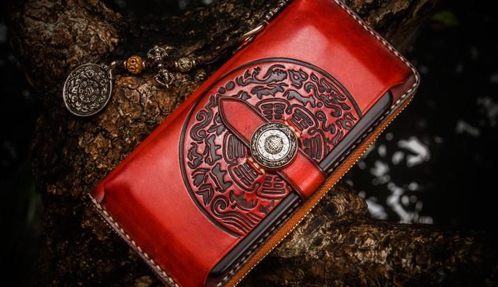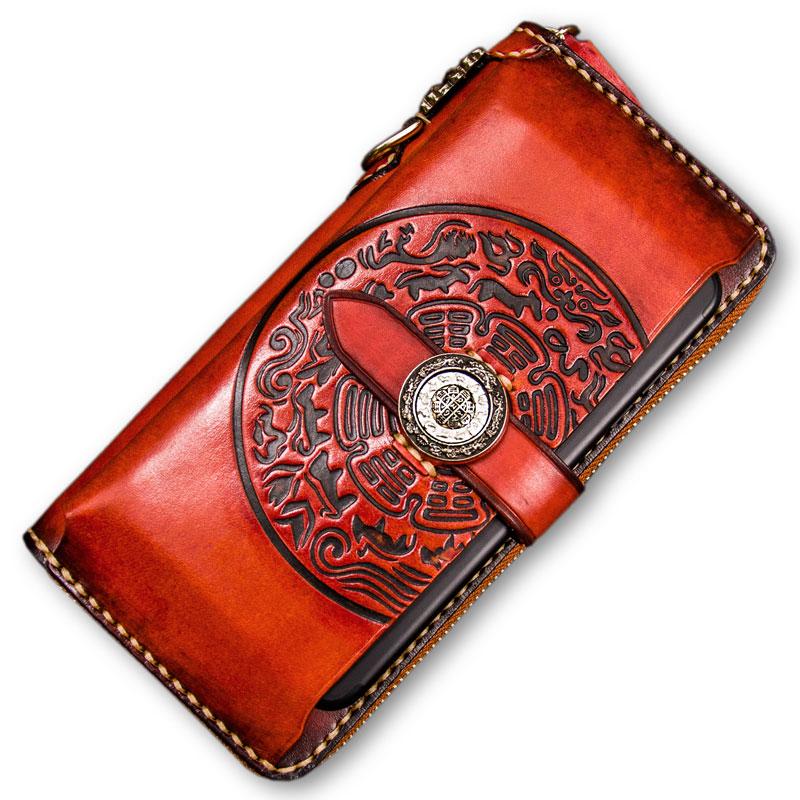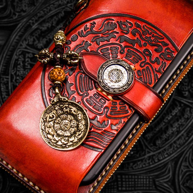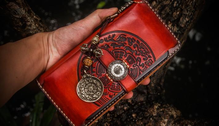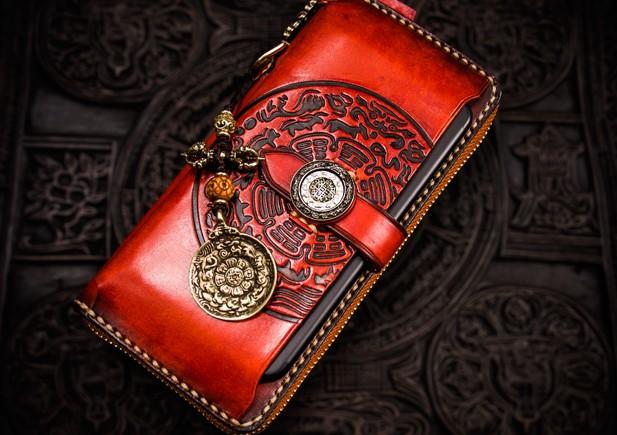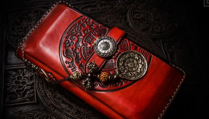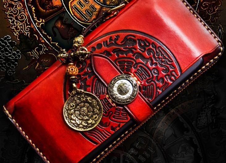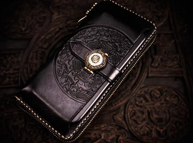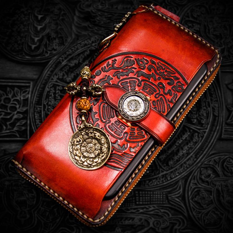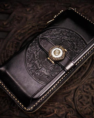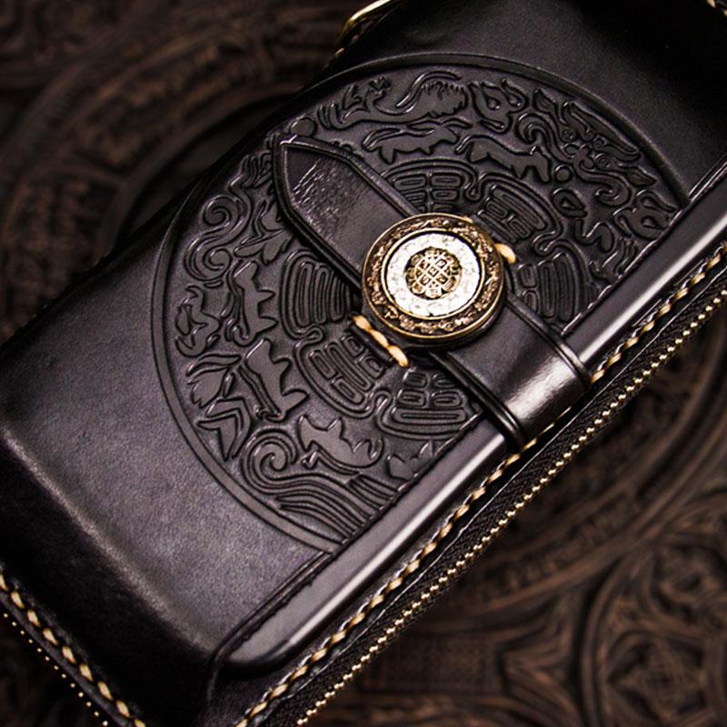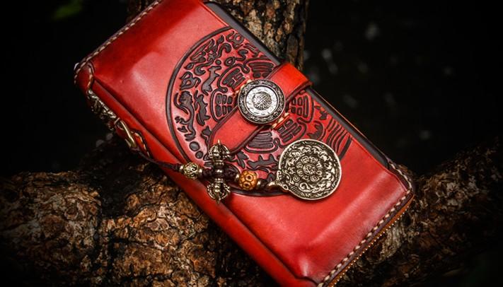 Design: Handmade Leather Tibetan Mens Chain Biker Wallet Cool Leather Wallet Long Clutch Wallets for Men