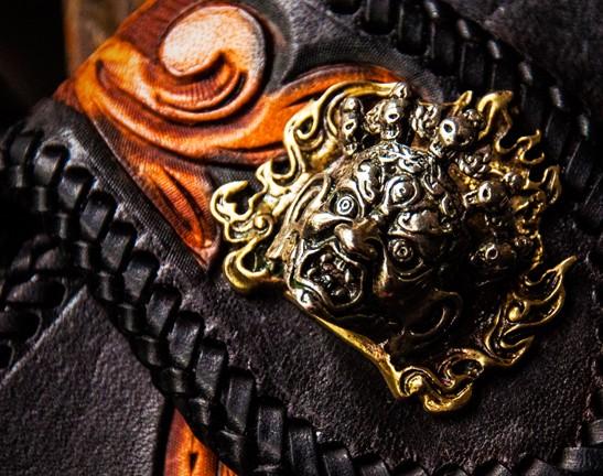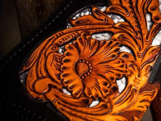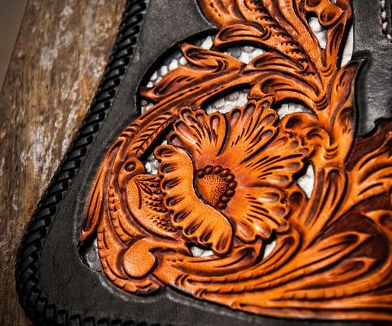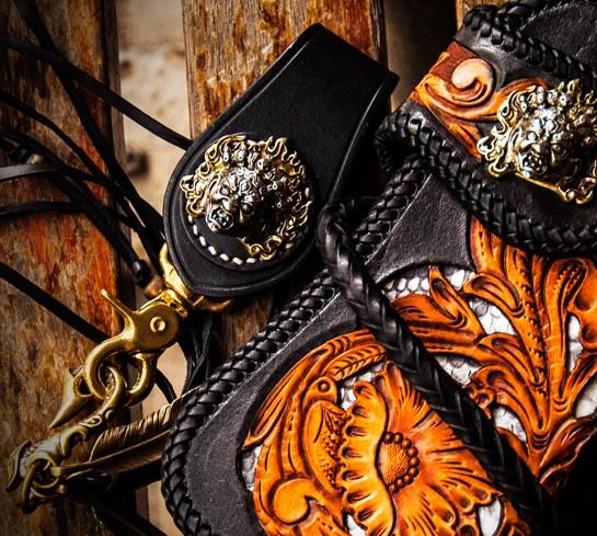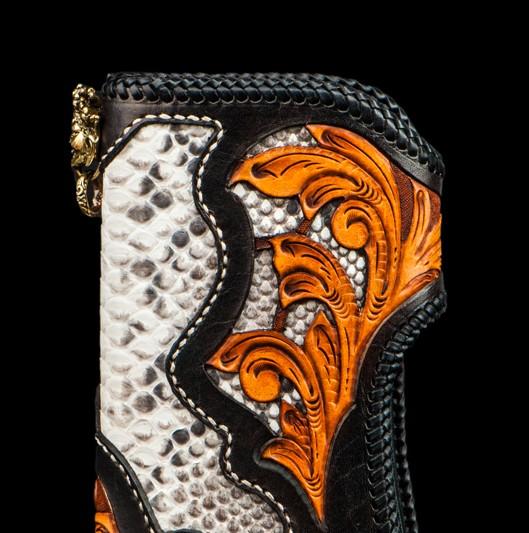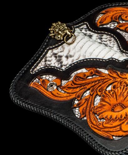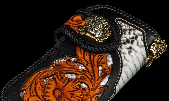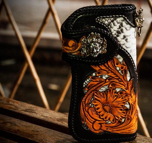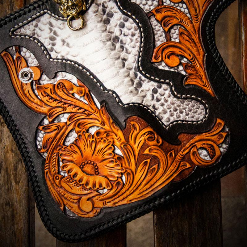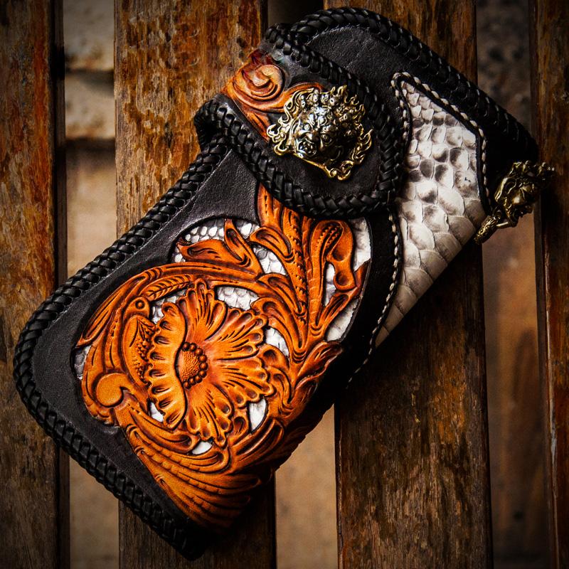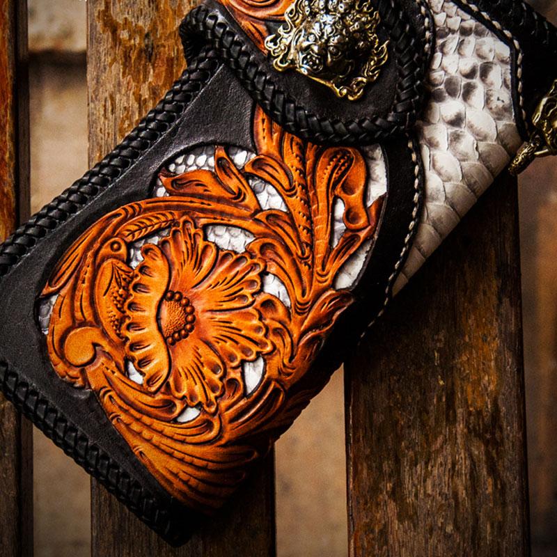 Design: Handmade Leather Tooled Floral Mens Chain Biker Wallet Cool Leather Wallet With Chain Wallets for Men