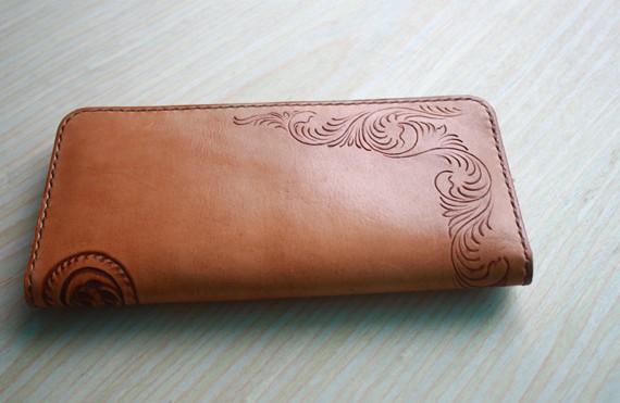Design: Handmade Leather Mens Long Wallet Vintage Cool Long Wallet for Men