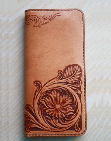 Style: Handmade Leather Mens Long Wallet Vintage Cool Long Wallet for Men