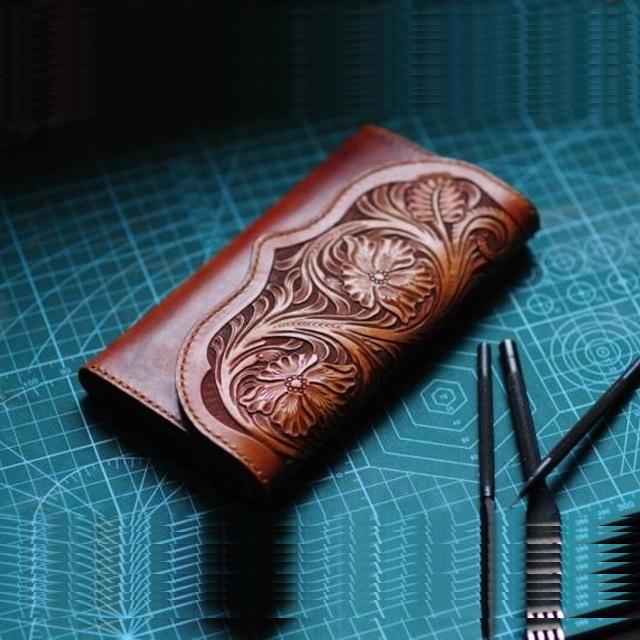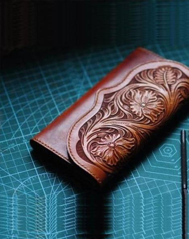Design: Handmade Leather Mens Long Wallet Vintage Cool Long Wallet for Men