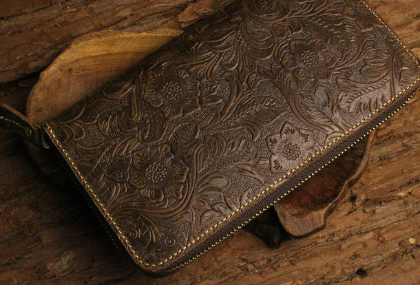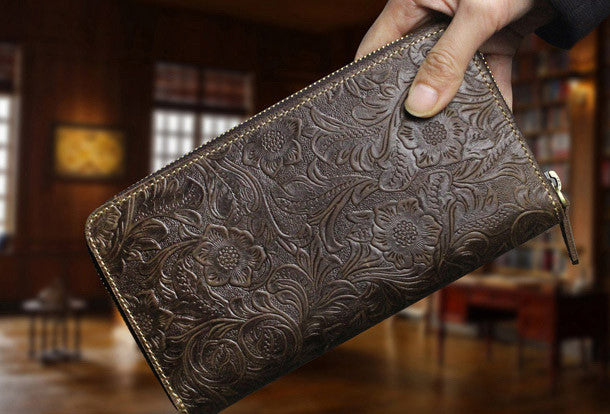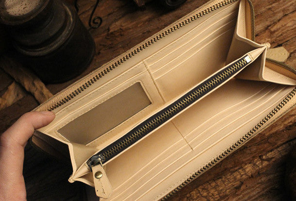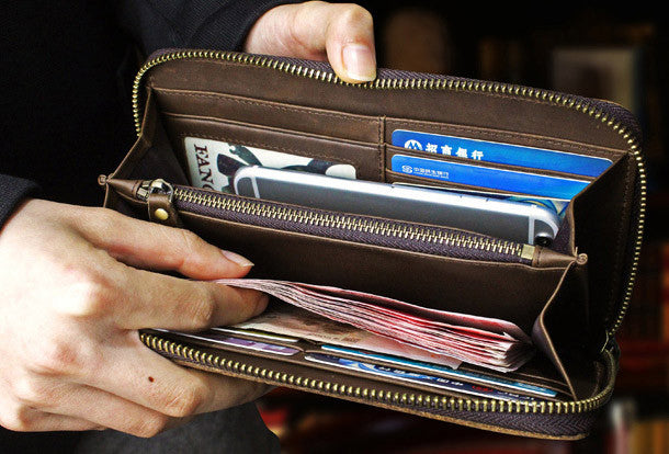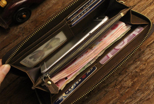 Style: Vintage Men Leather Long Wallet, clutch, zip wallet