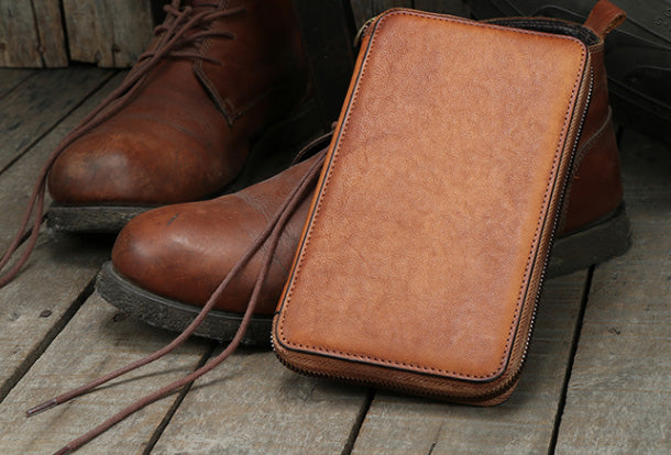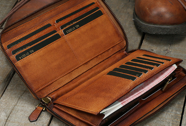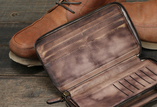 Design: Handmade vintage leather Long clutch Wallet