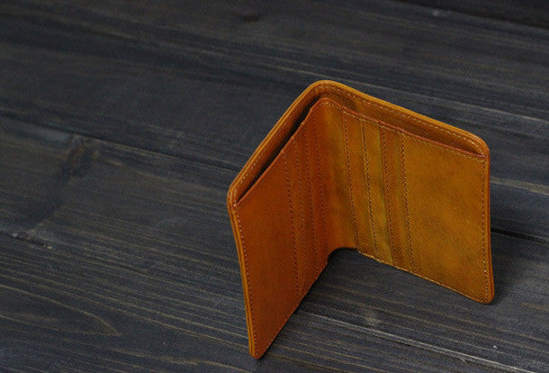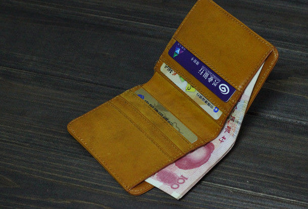 Design:?Vintage Leather Men billfold ?Brifold Wallet