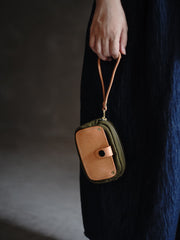 Design: Handmade Navy Canvas Leather Wristlet Wallet Zip Clutch Wallet Womens Green Ladies Zip Around Wallets for Women