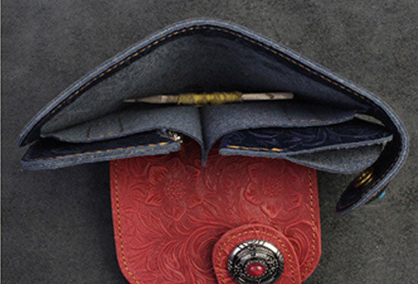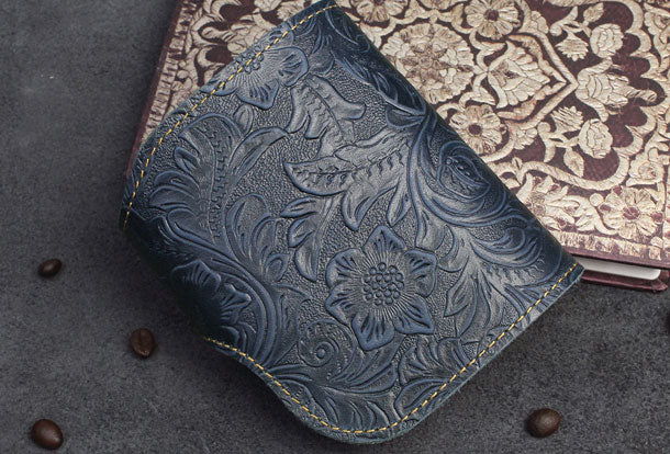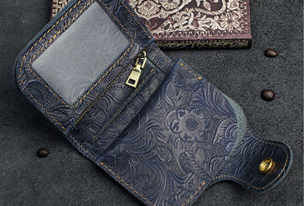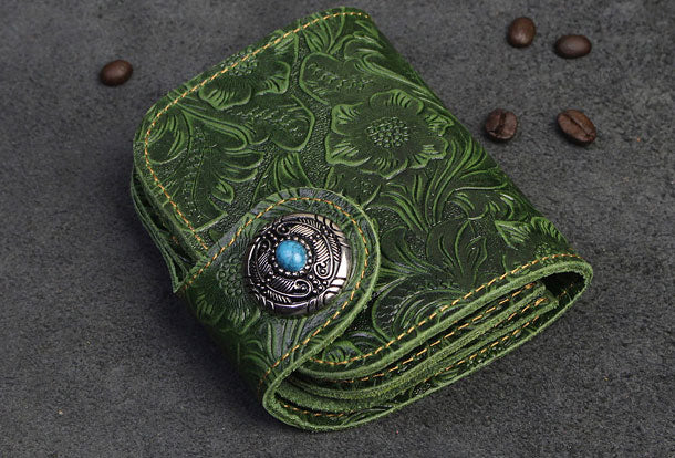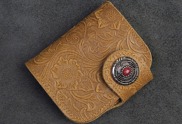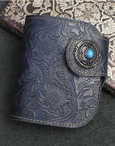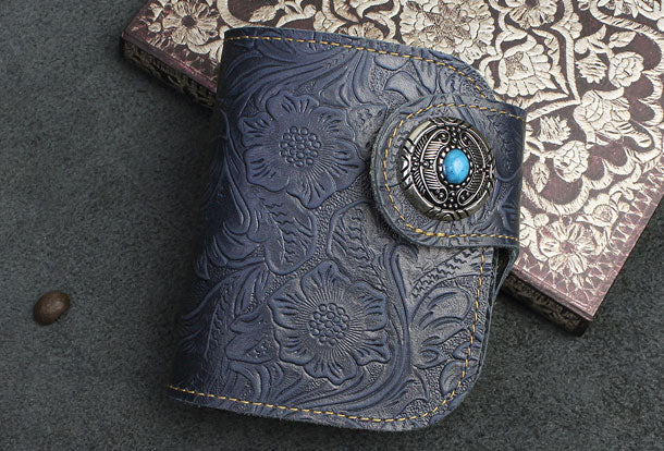 Design: Handmade billfold Bifold Leather Wallet Floral Leather Botton billfold Wallet For Men Women