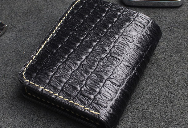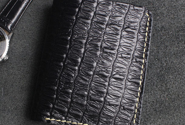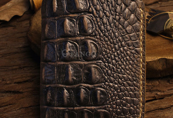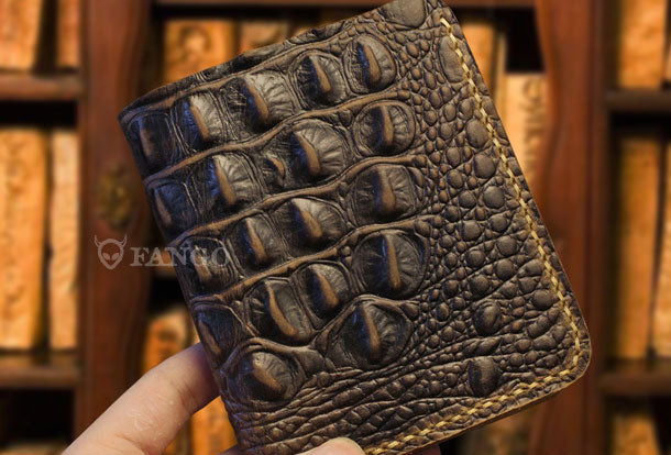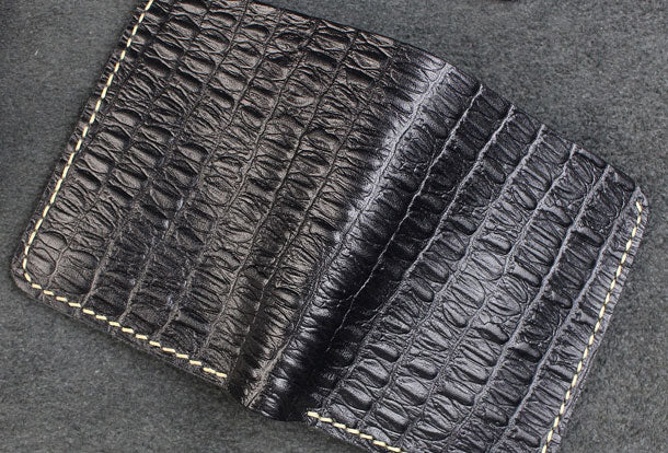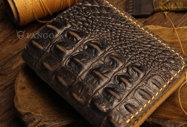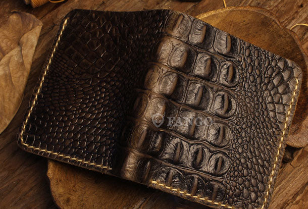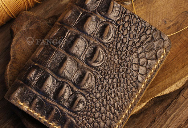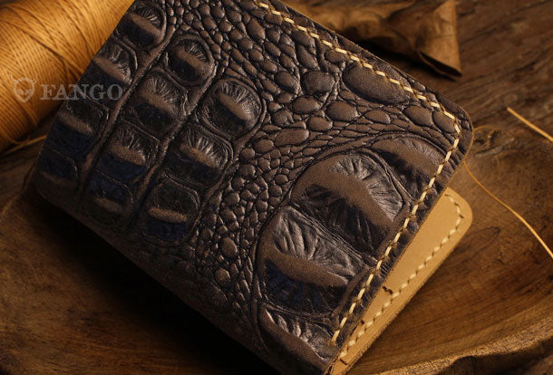 Design: Handmade billfold leather wallet crocodile style leather billfold wallet for men women