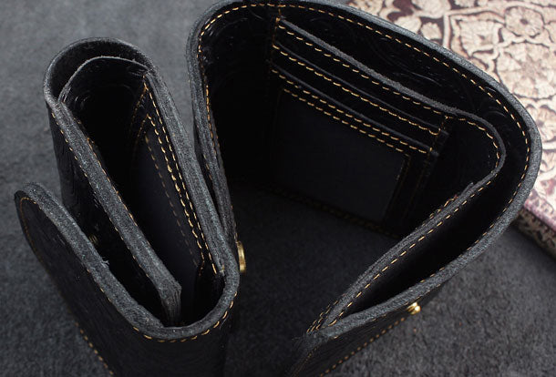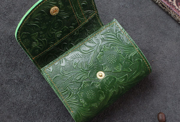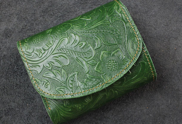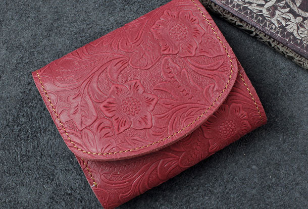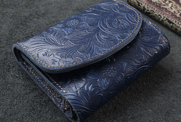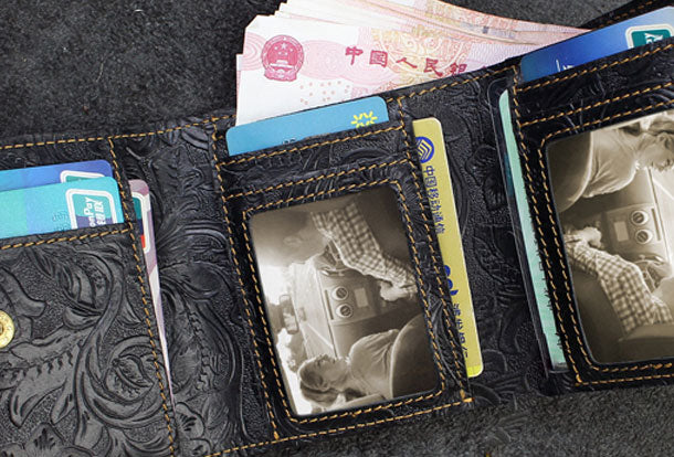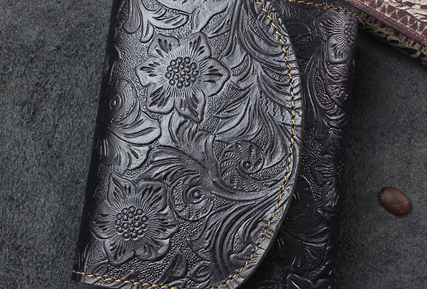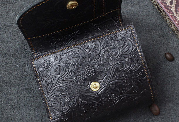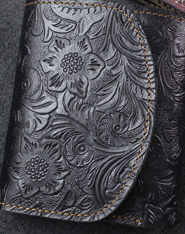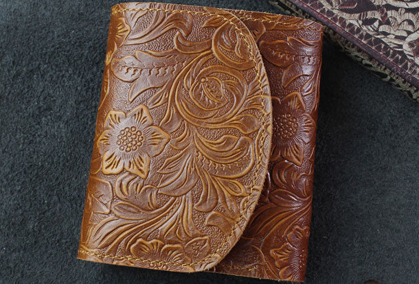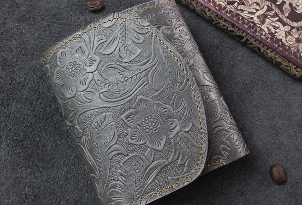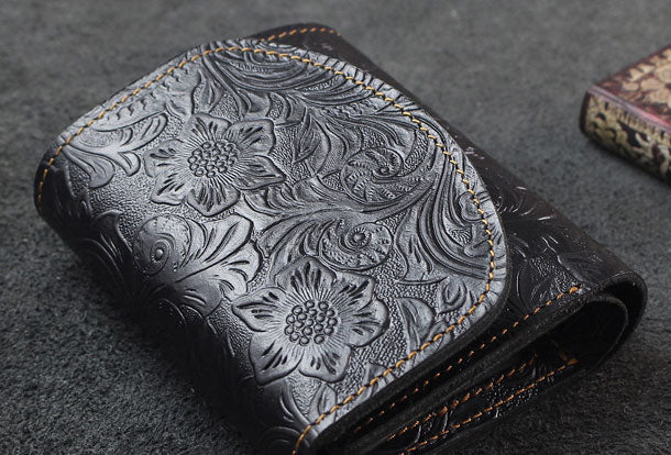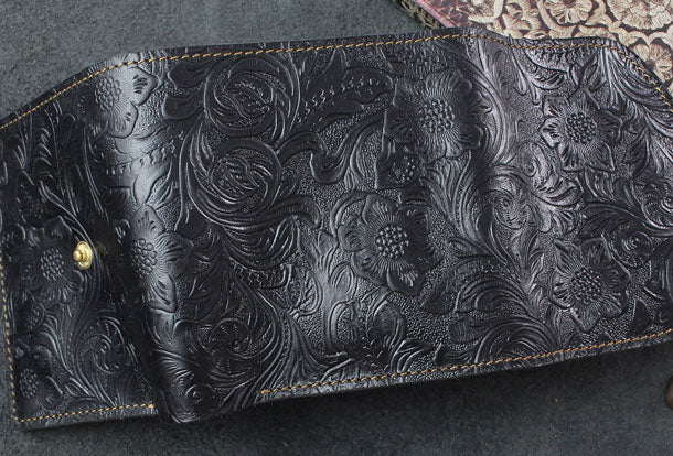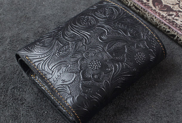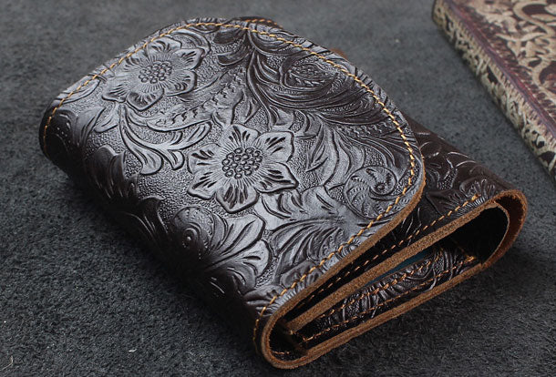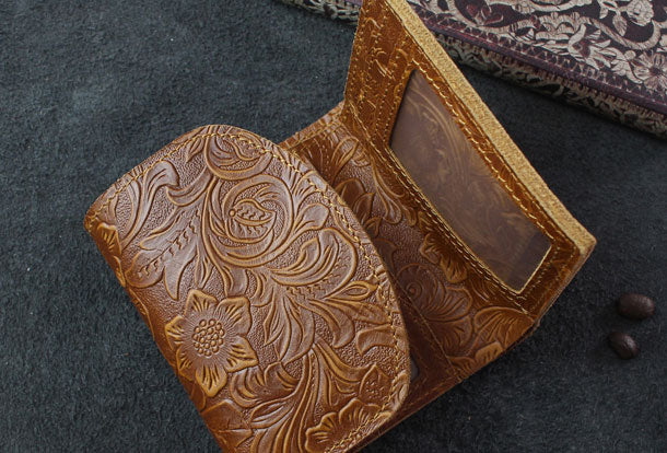 Design: Handmade billfold trifold leather wallet flowral leather billfold wallet for men women