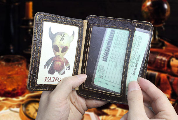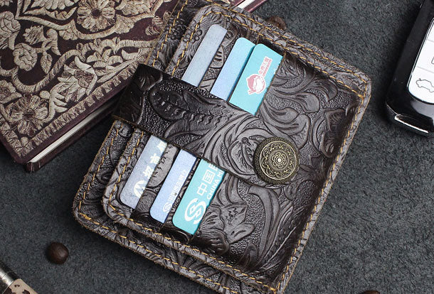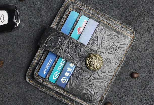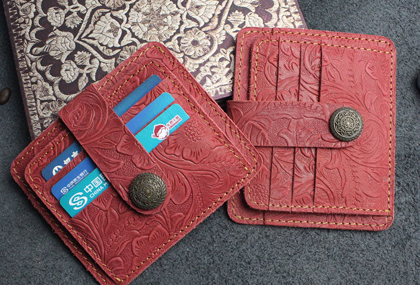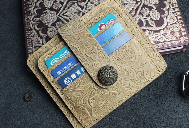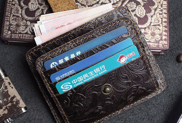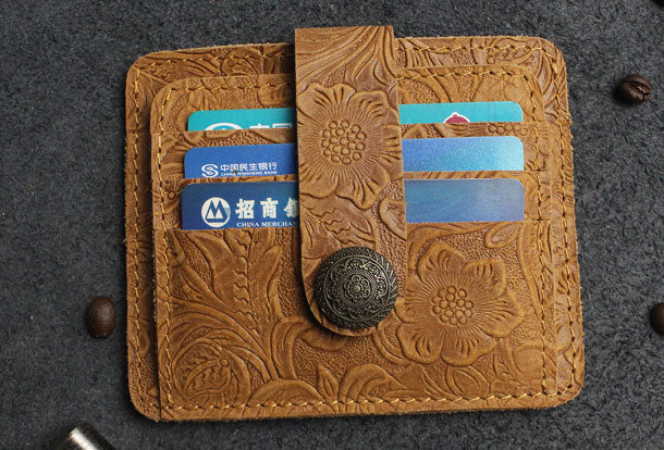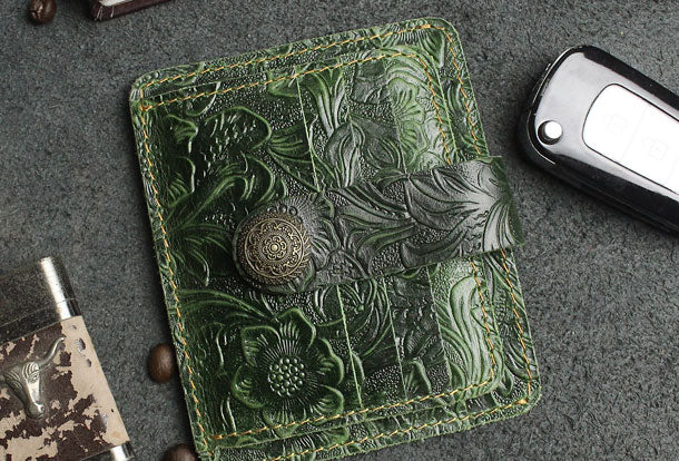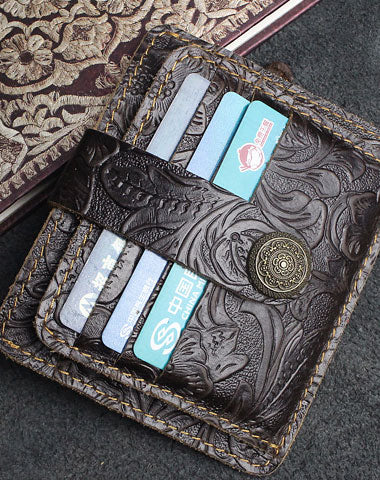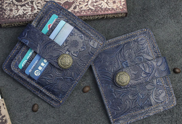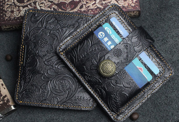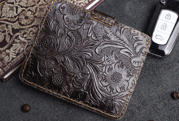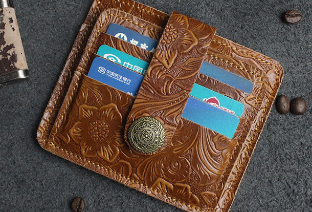 Design: Handmade billfold Leather Wallet Cards Wallet Flowral Leather billfold Wallet For Men Women