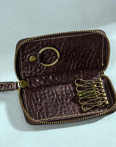 Style: Leather Men Small Key Wallet Bifold Small Keyring Wallet for Men