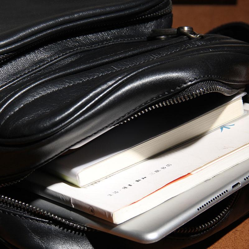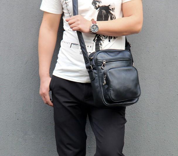 Design: Leather Mens Cool Black Messenger Bag Shoulder Bag Crossbody Bag for Men