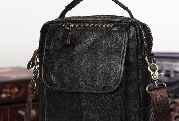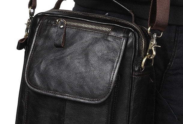 Design: Men Leather Black Handbag Messenger Bag Crossbody bag Cool For MenOverview: