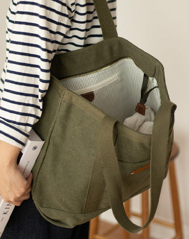 In summary, the Army Green Canvas Large Tote Bag is a practical, stylish, and eco-friendly accessory that meets the needs of both men and women. With its ample space, thoughtful design features, and durable construction, it is a reliable companion for work, daily activities, and shopping.