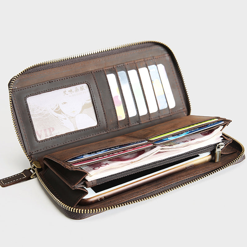 Design: MENS LEATHER ZIPPER LONG CLUTCH Personalized WALLETs ZIPPER VINTAGE LONG WALLET FOR MEN