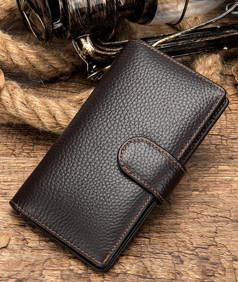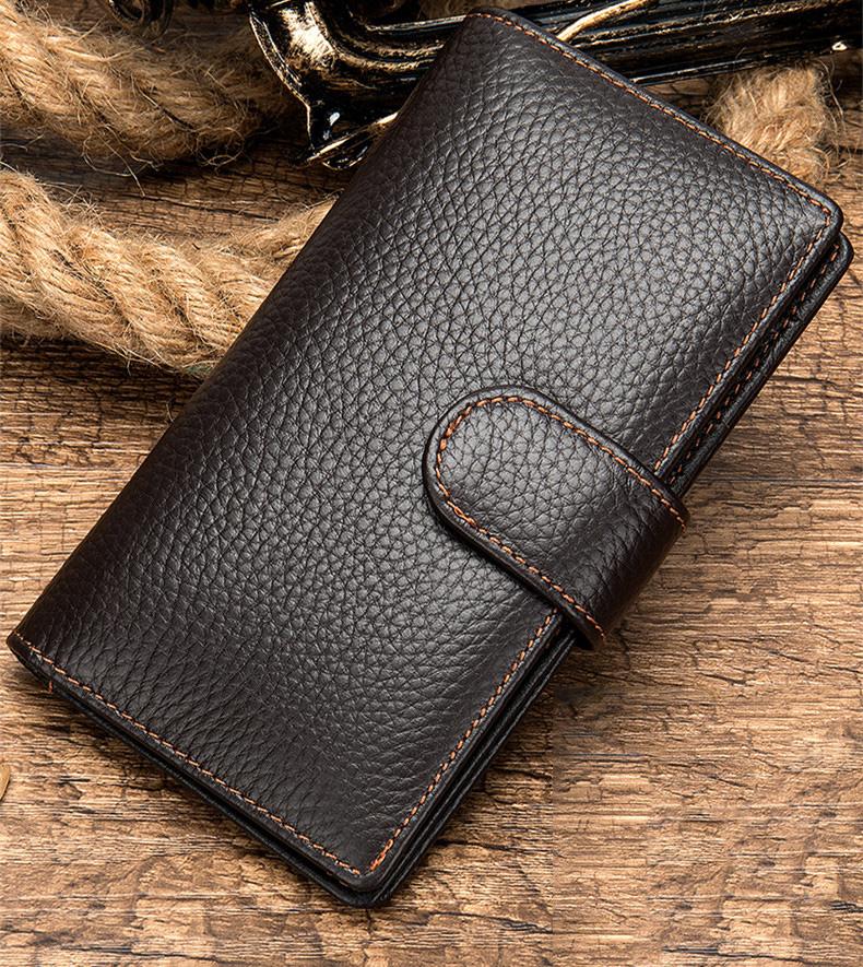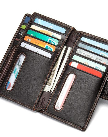 Design: Black Leather Men's Wallet Trifold Long Wallet Multi Cards Long Wallet For Men