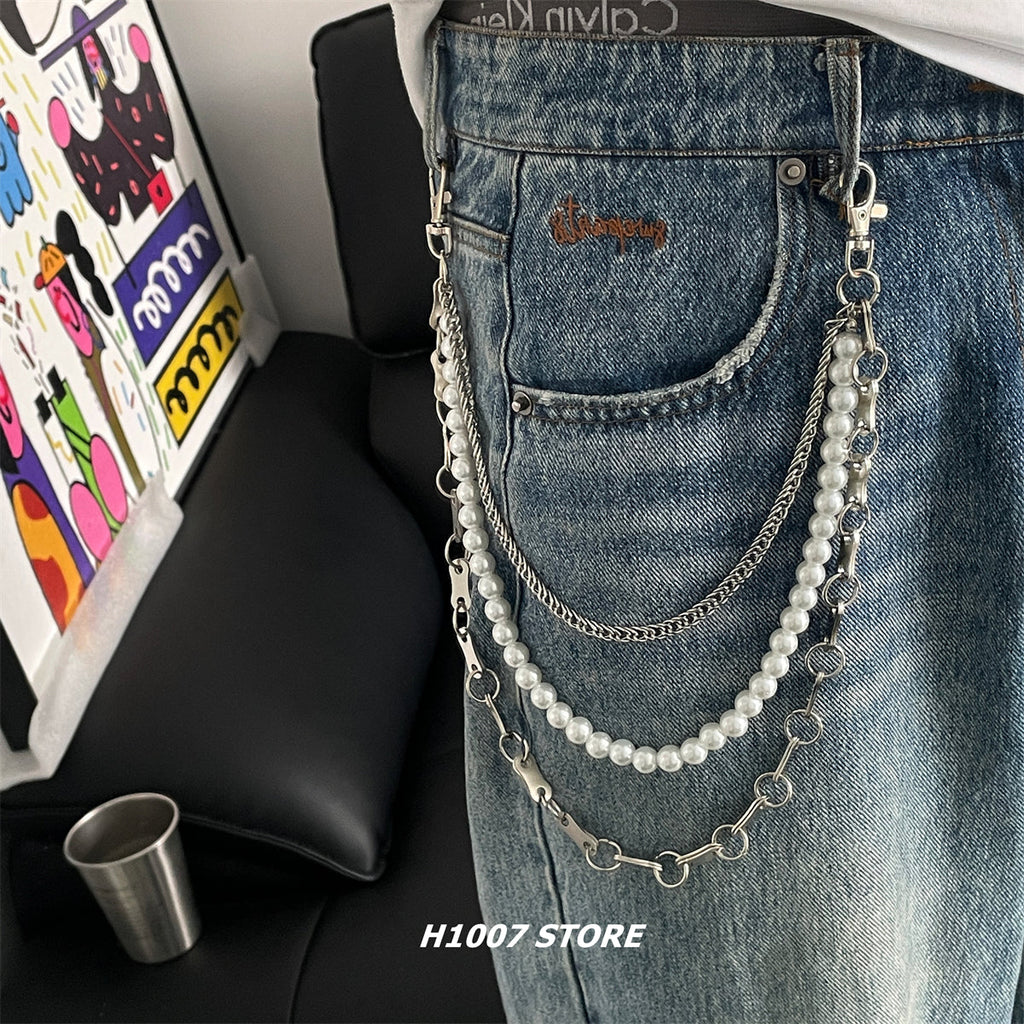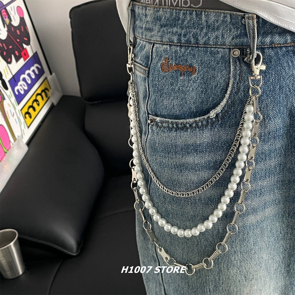 Discover the ultimate expression of stylistic fusion with our groundbreaking Triple Wallet Chain, a masterpiece that harmoniously blends three distinct aesthetics into one revolutionary accessory. This 85cm showstopper features an innovative three-chain design where each layer tells a different story: a delicate alloy chain foundation, an elegant pearl middle layer, and an industrial bicycle chain exterior. This extraordinary Pearl Wallet Chain creates a captivating dialogue between minimalism, elegance, and raw urban edge, offering unprecedented versatility for the modern fashion pioneer.
