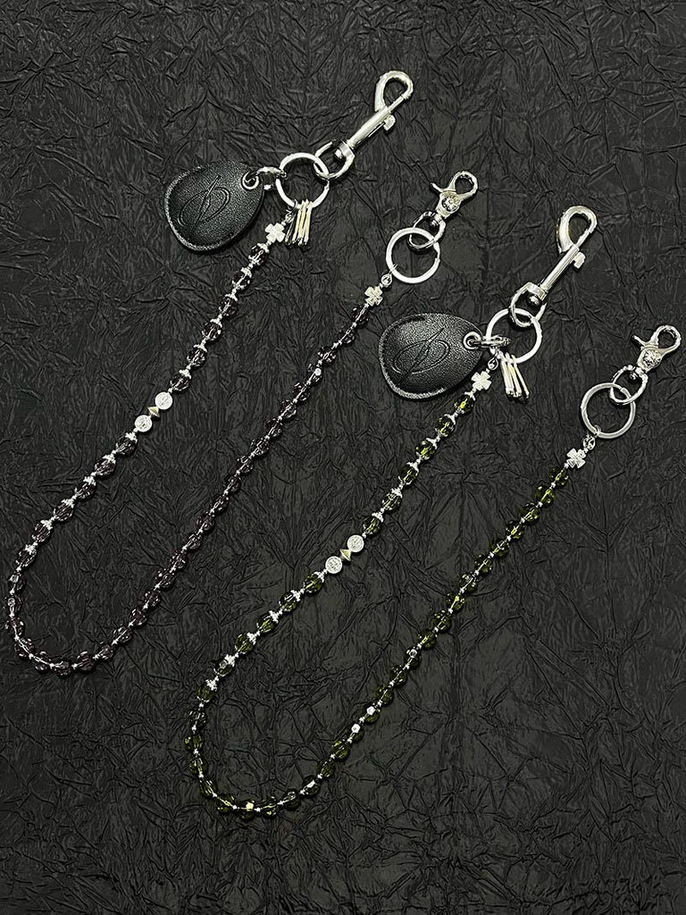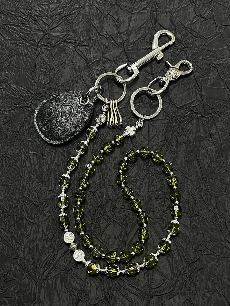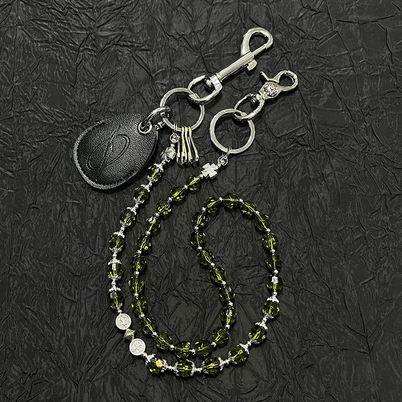 Introducing a truly unique accessory that redefines wallet chain design - our extraordinary Beaded Wallet Chain. This 78cm masterpiece breaks from tradition by replacing common metal materials with exquisite multi-faceted crystal beads in a sleek spindle shape. What makes this Beaded Pants Chain particularly special are the intricately styled beads interspersed throughout - featuring crosses, coins, and medallions that add distinctive character and symbolism. Available in two captivating colors, Purple and Green, this innovative chain brings a fresh aesthetic to accessory design.