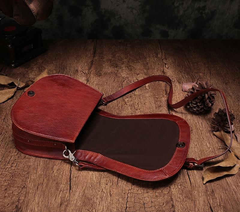 Red Vintage Leather Womens Saddle Shoulder Bag Side Bag Green Cross body Purse for Ladies